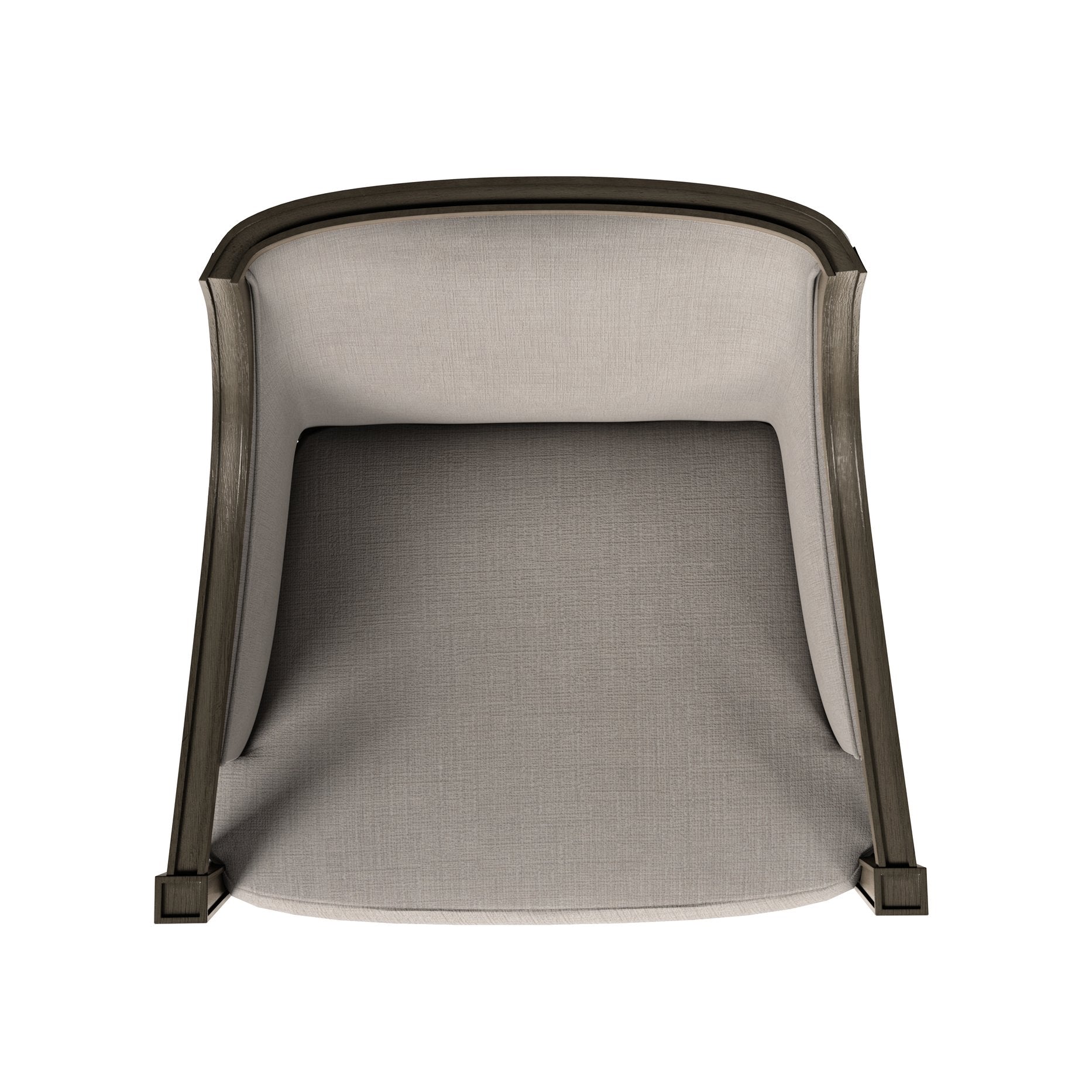 - Upholstered in a stire inspired fabric in a mushroom colorway