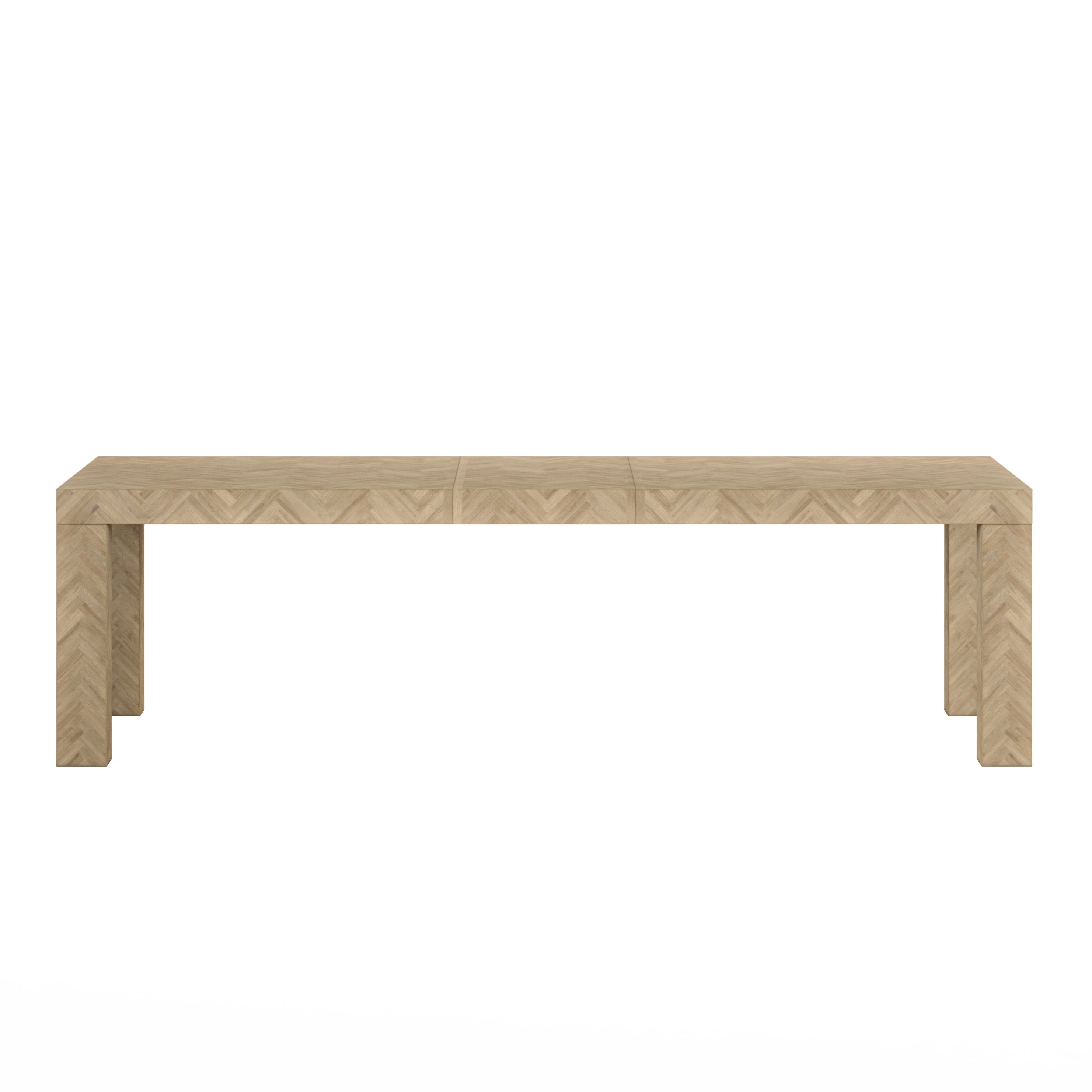 A study in the history of herringbone, the Garrison Collection brings bold new life to this beloved pattern. Its clean silhouettes allow the herringbone to take center stage, giving this collection its signature design in a California Casual style. Garrison’s dry, washed oak finish pairs with creamy white textured accents that add a modern, relaxed air to the assortment. Balancing its robust scale, this collection is flecked with delicate marble, subtle hardware, and soft fabrics to add sensorial depth. Create an audaciously relaxed atmosphere in your home with Garrison.