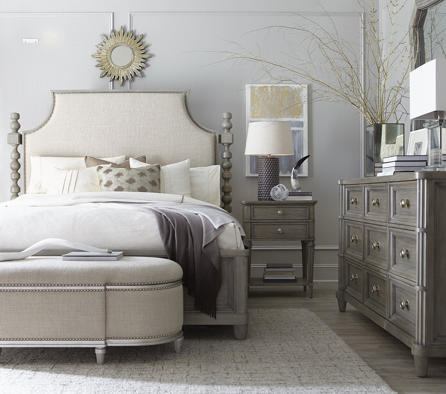It’s all in the details. The beautifully curated detailing of the Deco-inspired Morrissey Collection from A.R.T. Furniture proves once again that less is elegantly more. From jewelry-like custom hardware to the cedar lining of an upholstered end-of-bed storage bench, from the soft glow of silver to the practicality of a hidden USB port, the collection exceeds expectations with a kind of glam that is both striking and highly livable