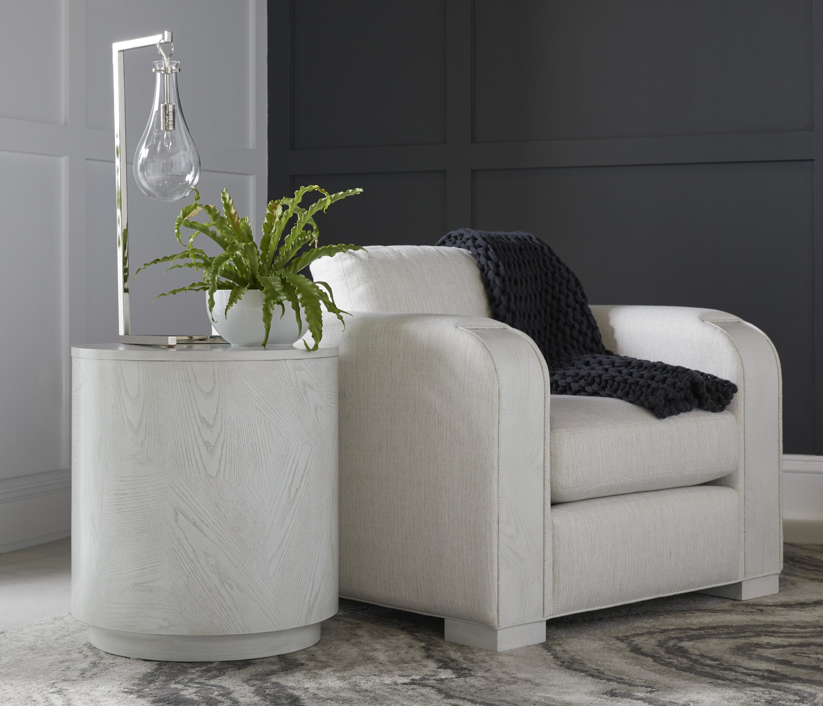 - Hardwood frame with exposed wood arms in a driftwood finish