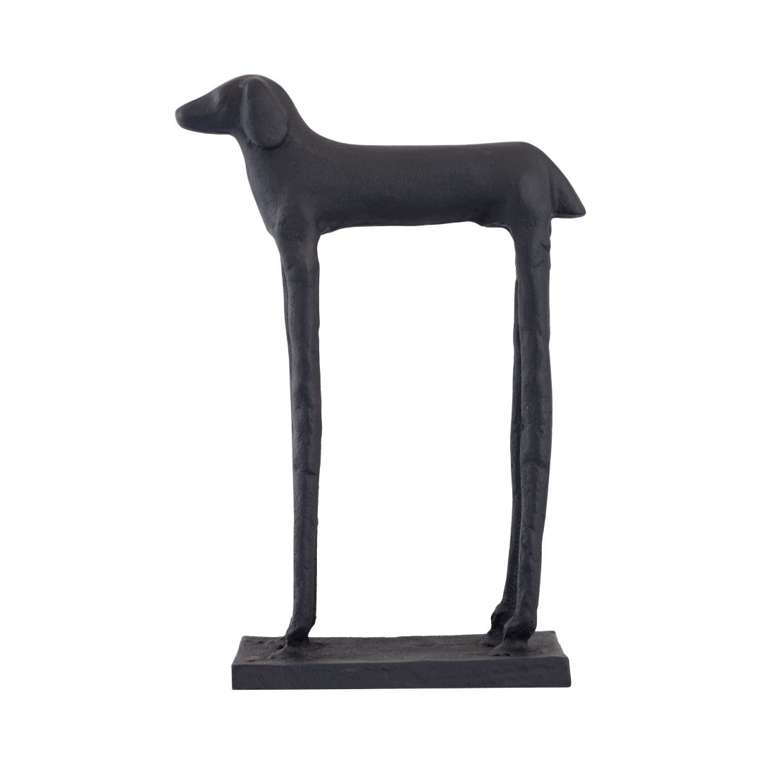Introduce a striking, sculptural accent to your space with the Jorgie Dog Object. Crafted from aged black metal, this dachshund-inspired form balances playful character with modern minimalism—its elongated legs and rectangular base create an eye-catching silhouette that elevates tabletops, shelves, or mantel displays.