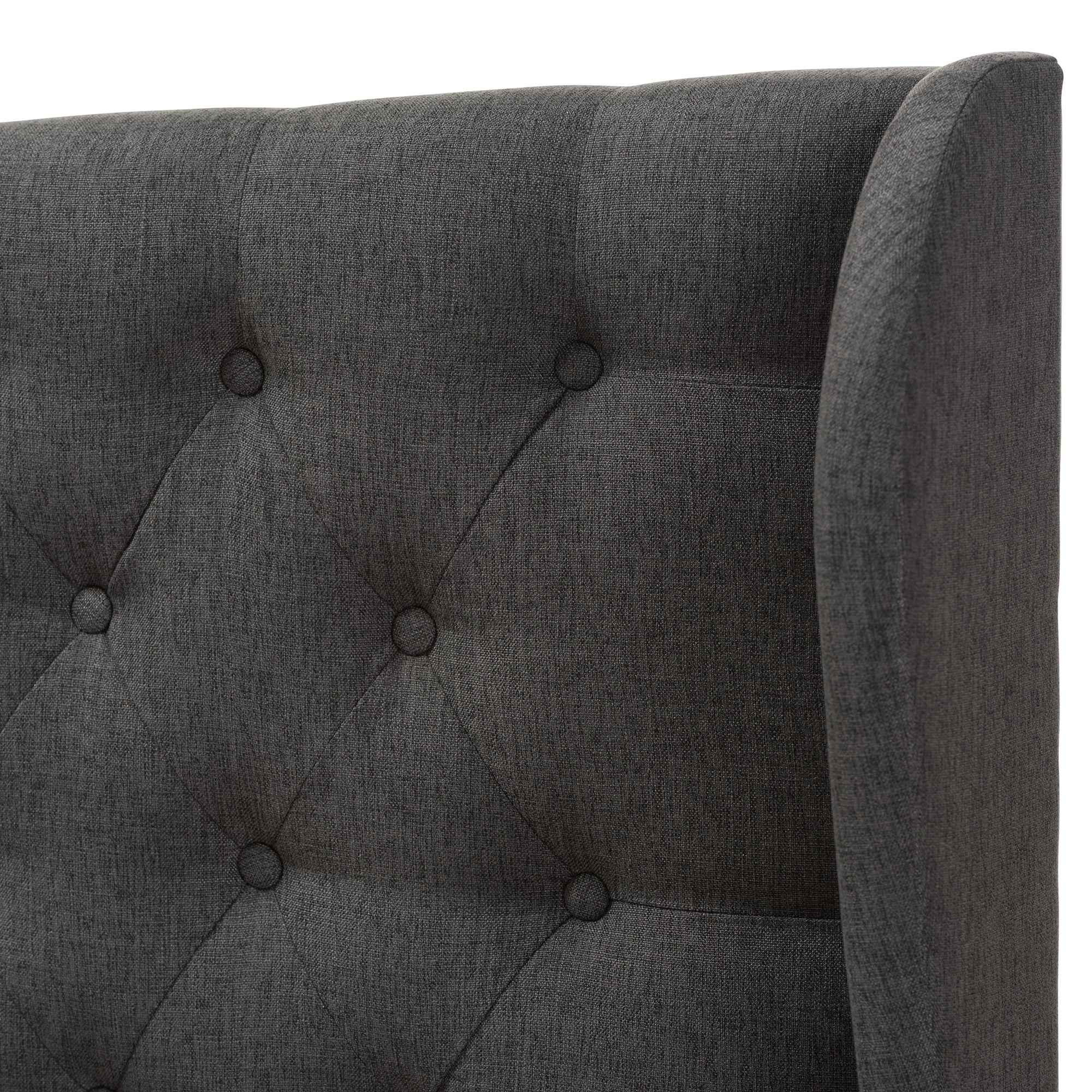 - Dark grey fabric upholstery