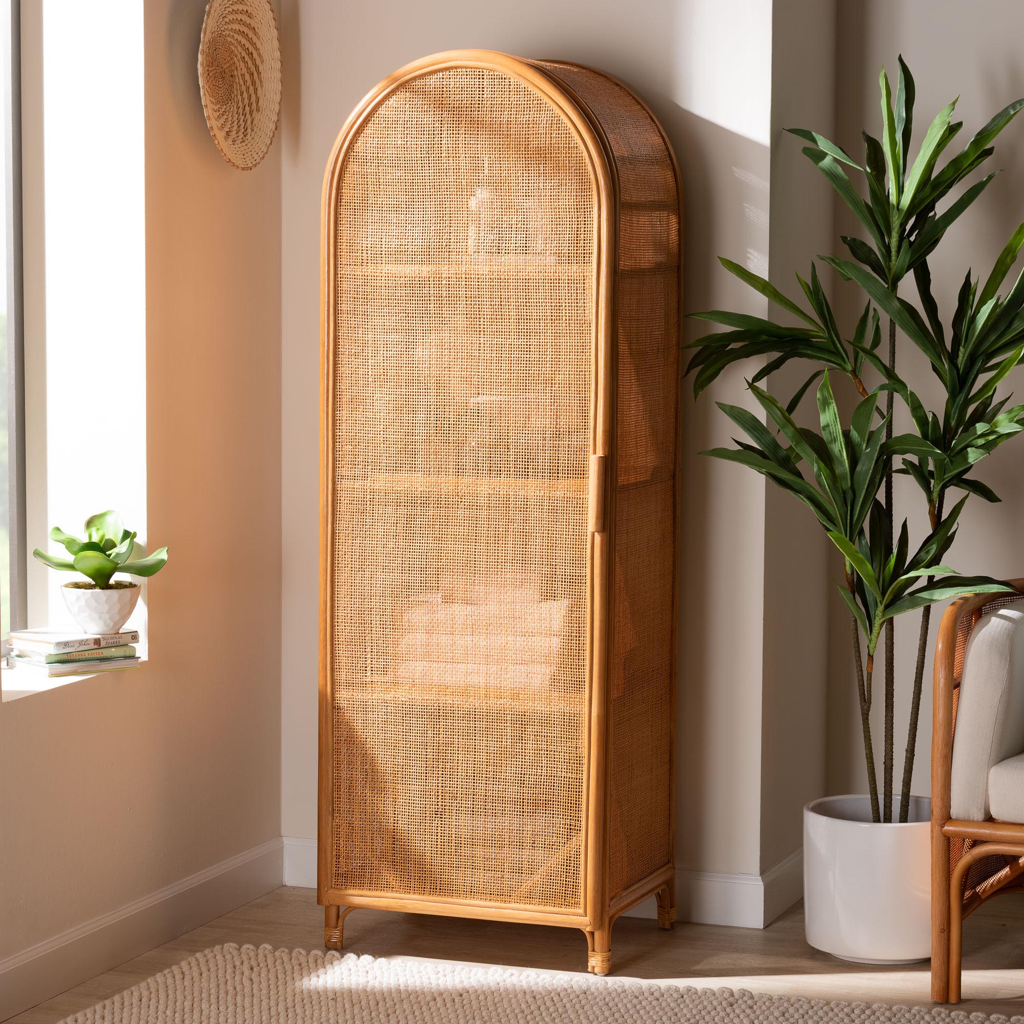 SKU:Ayou-Light Honey Rattan-Tall Cabinet
