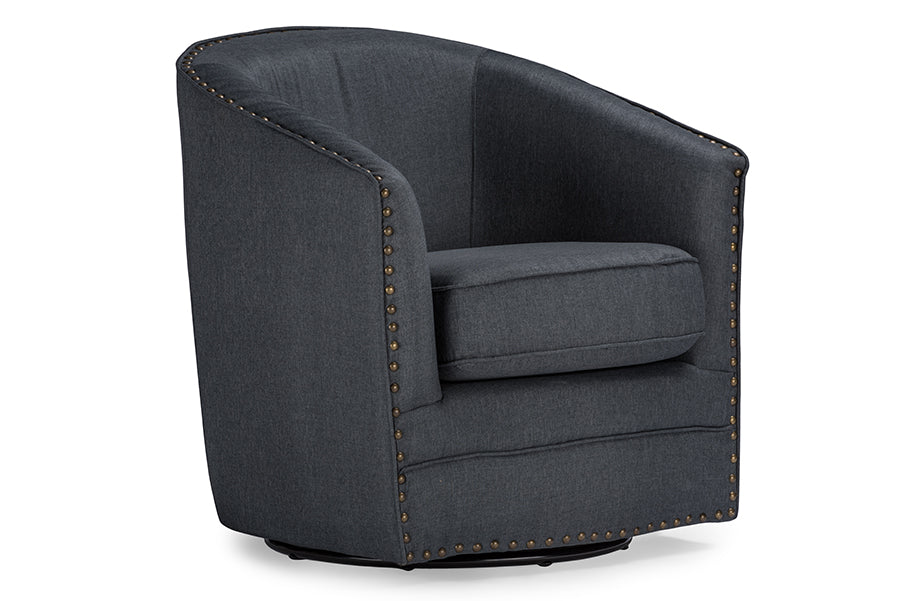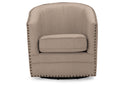 - Design: bronze nail heads trim, shelter style back, swivel base with puffy cushions
