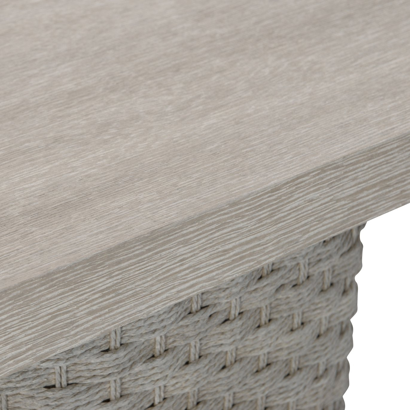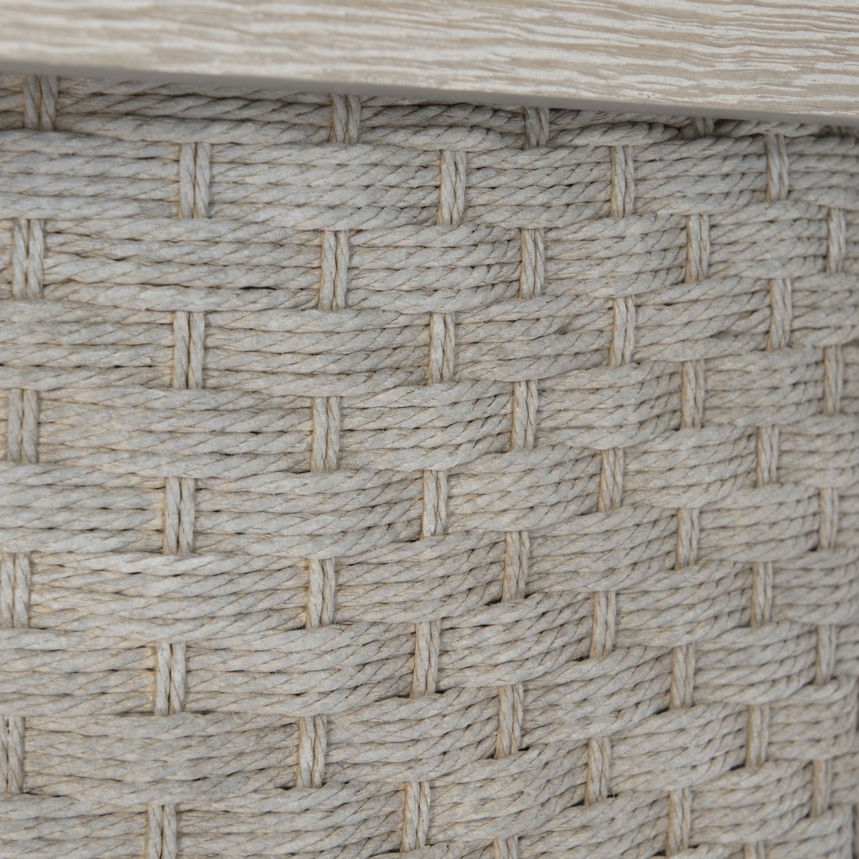 - Pedestal Detail: Side pedestal wrapped in woven twisted paper rope for tactile texture and artisanal appeal.