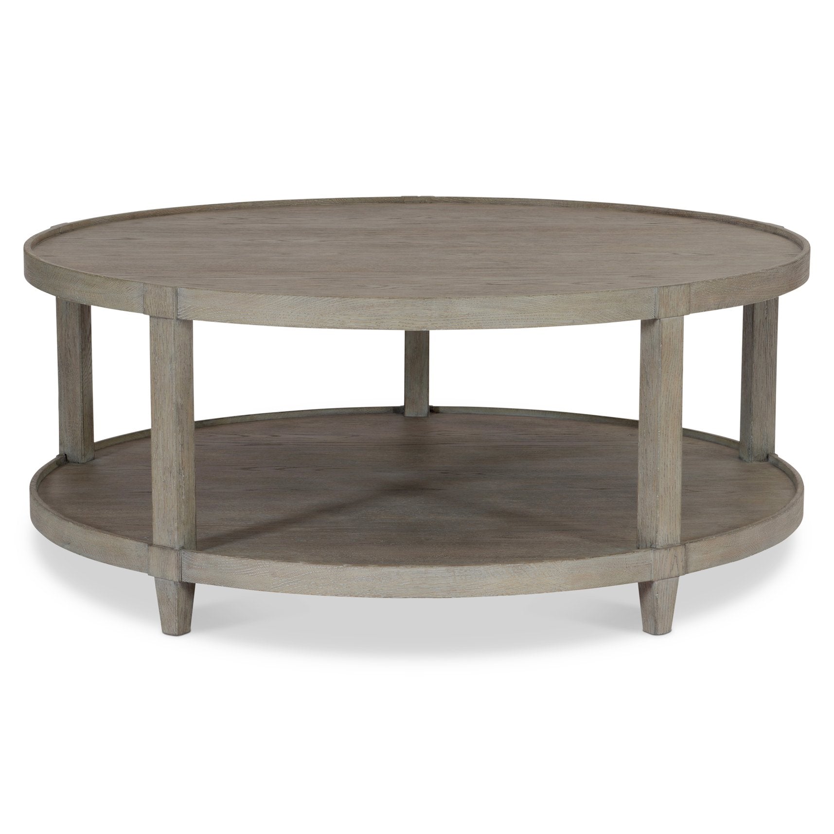 Elevate your living space with the Albion cocktail table — a casually elegant centerpiece that blends traditional form with a weathered, historic character. Its paired circular tops, tapered five-leg base, and layered pewter cerused oak finish create warmth and visual interest while remaining versatile for both classic and contemporary interiors.