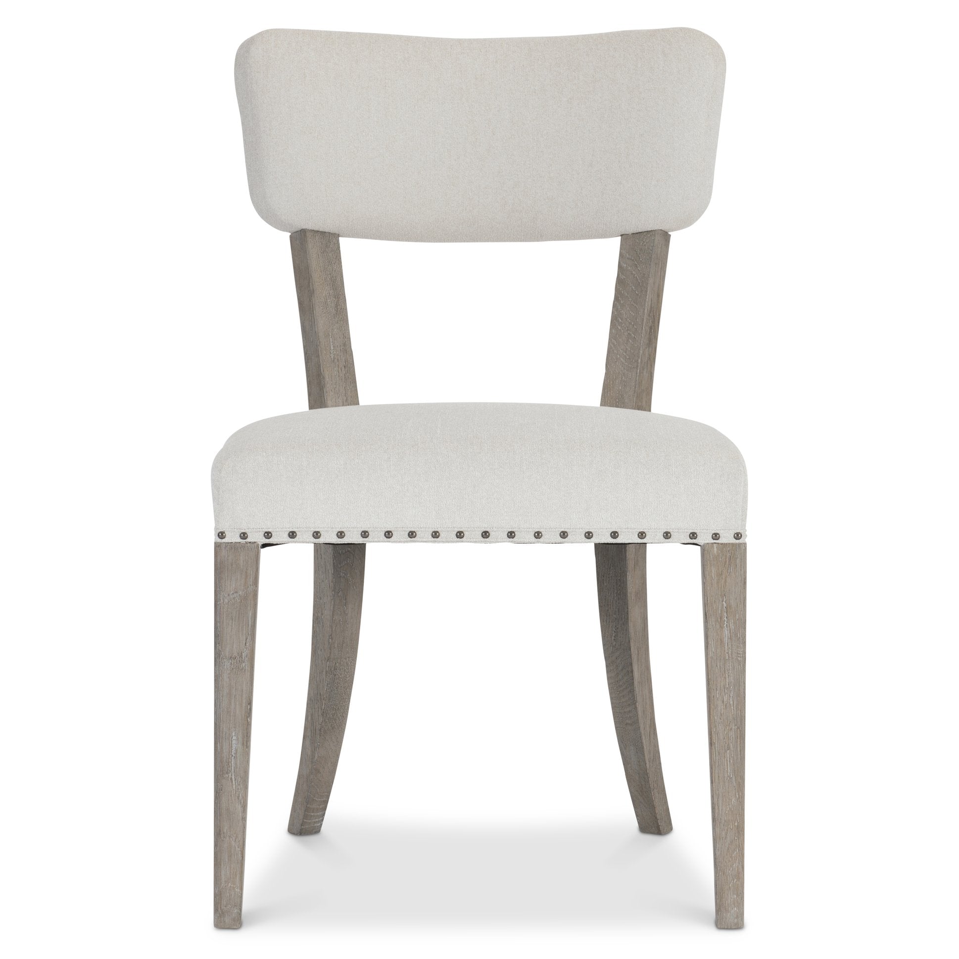 A refined blend of traditional craftsmanship and modern rustic styling, this side chair brings timeless details into contemporary interiors. The Albion features a solid white oak frame with a wire-brushed Pewter finish, tailored upholstery, and thoughtful accents that elevate dining or occasional seating with both comfort and visual interest.