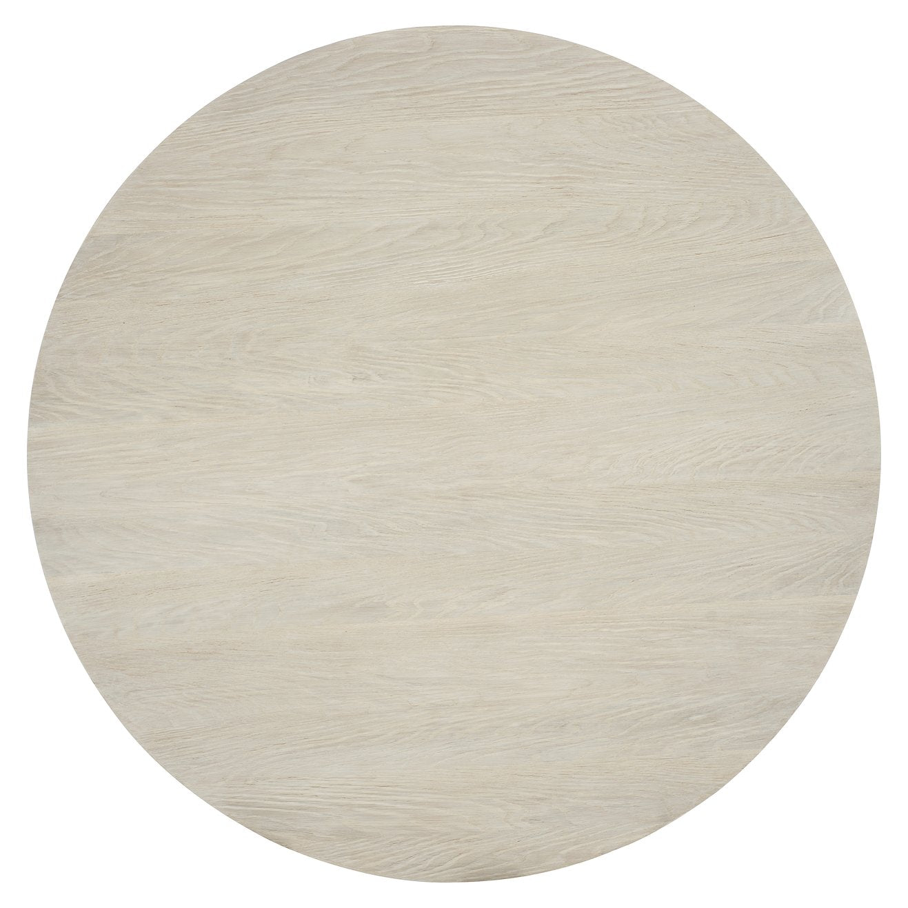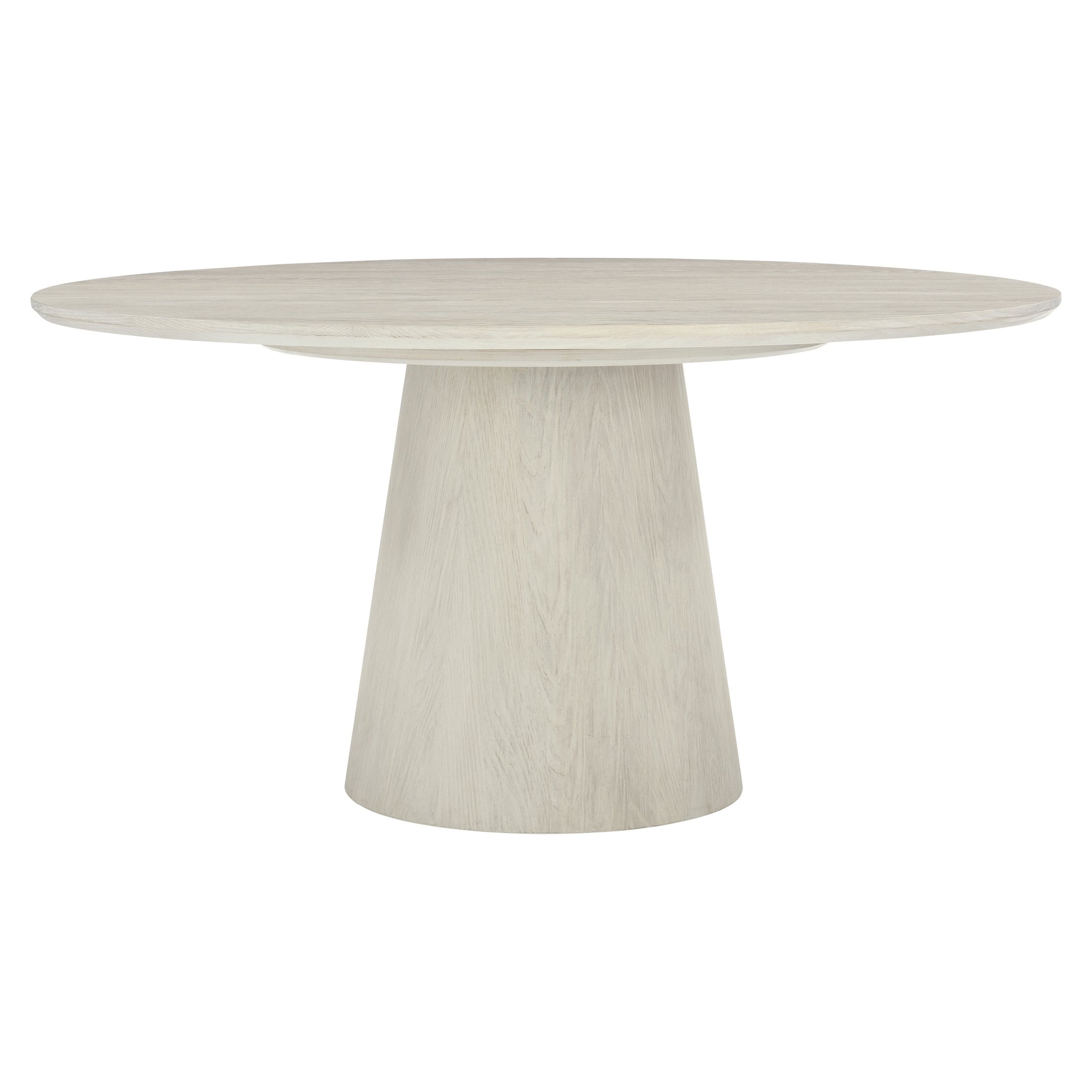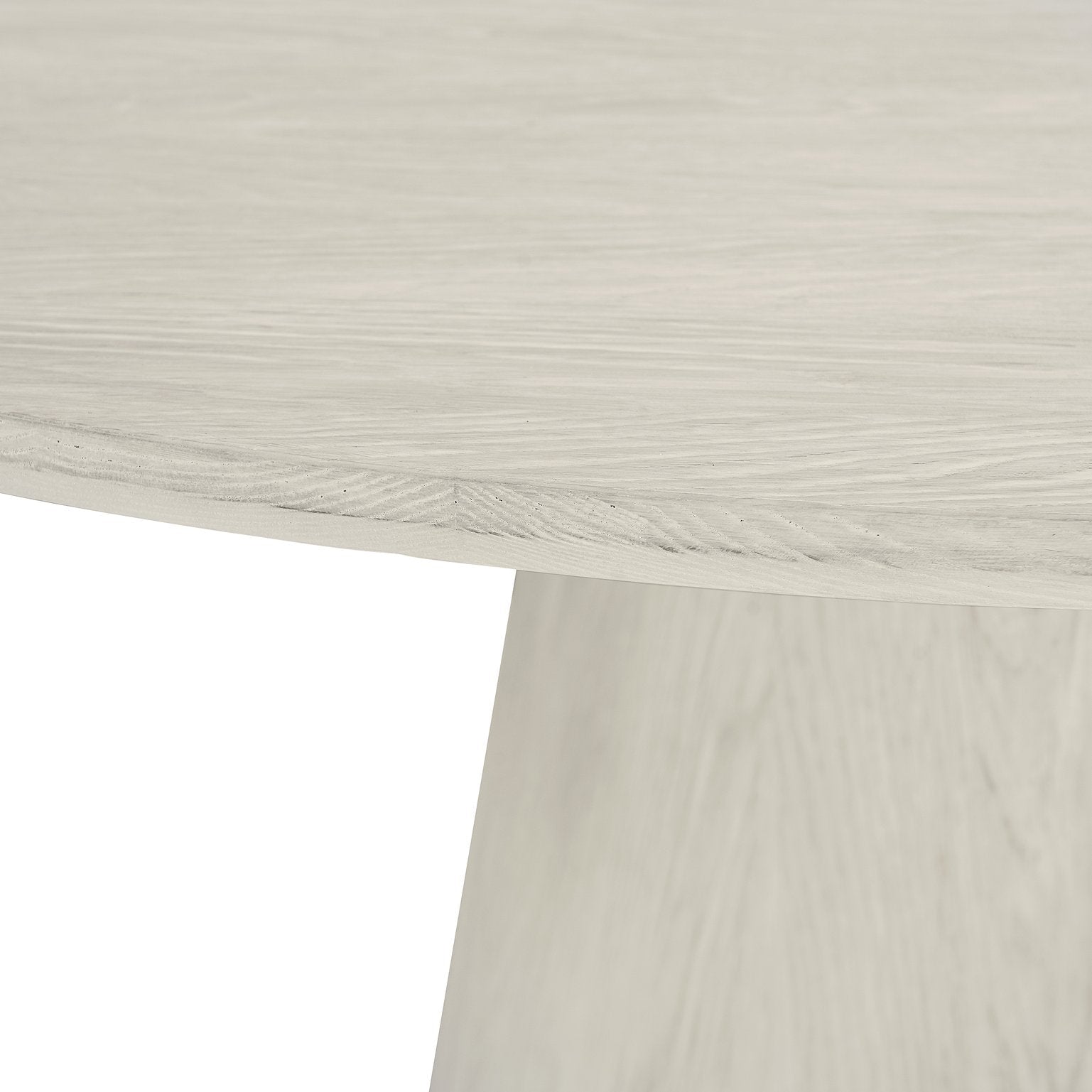 Elegant and sculptural, this round dining table combines modern simplicity with natural warmth. Its sandblasted white oak veneers in a light jicama finish create a casual yet refined aesthetic, while the round tapered pedestal provides a balanced, uncluttered silhouette ideal for contemporary dining spaces.