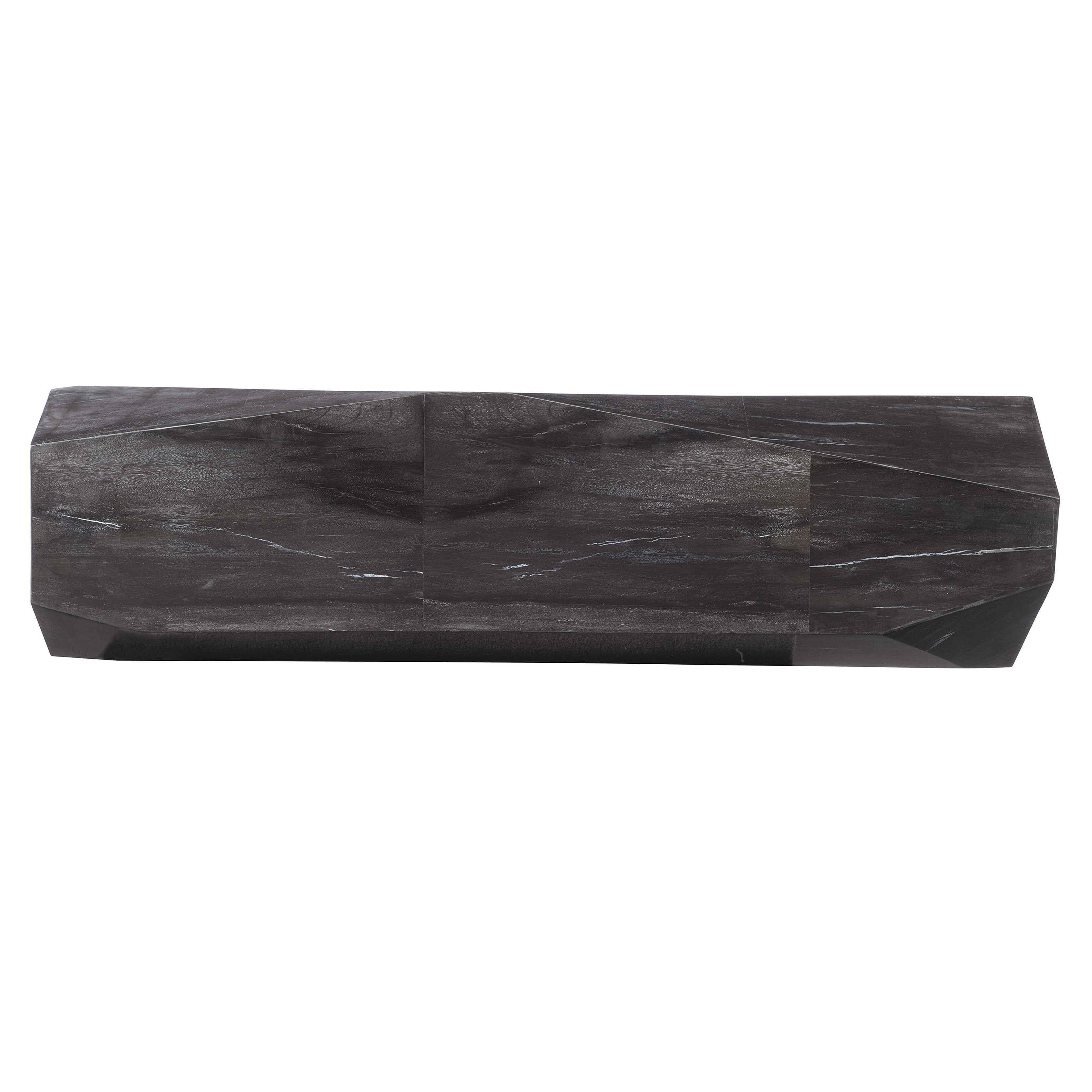 Black petrified wood exterior Note: Color can vary slightly as each table is a unique natural material Note: Felt bottom to protect floor surfaces