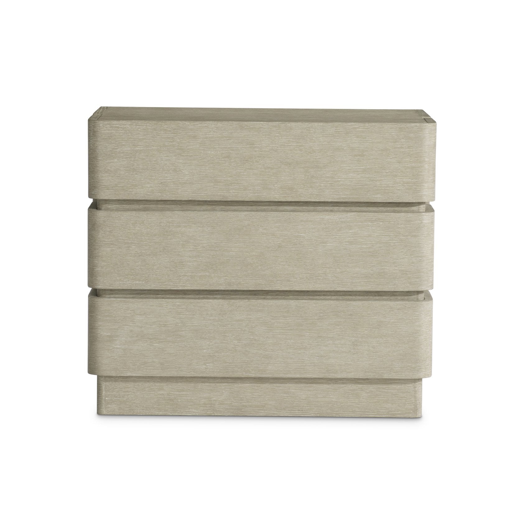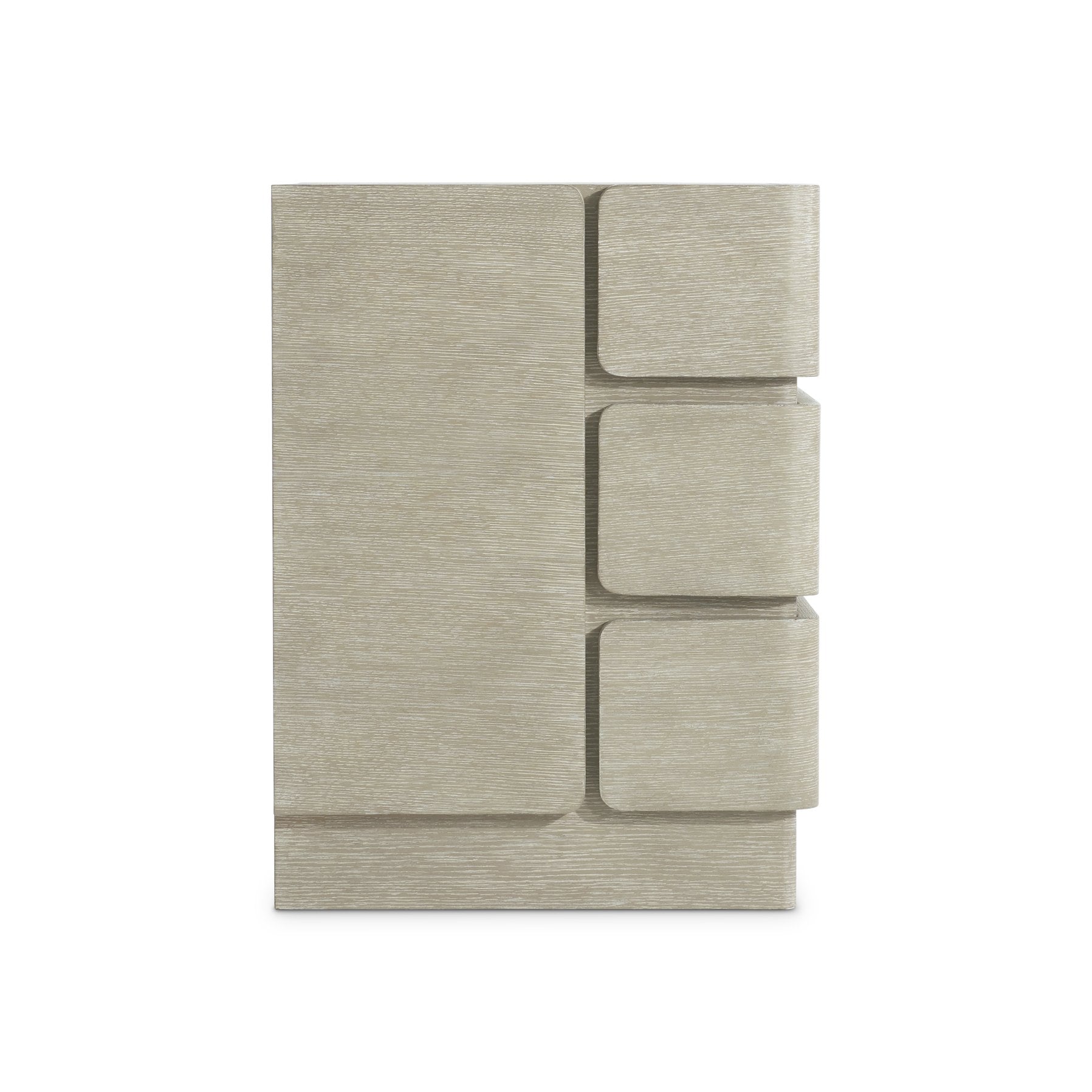 Refined and contemporary, this nightstand blends clean lines with subtle rustic texture to elevate any bedroom. Its wrap-around drawer fronts and wire-brushed oak finish create a sculptural silhouette that’s both functional and visually striking, while built-in charging and soft-close hardware bring modern convenience.