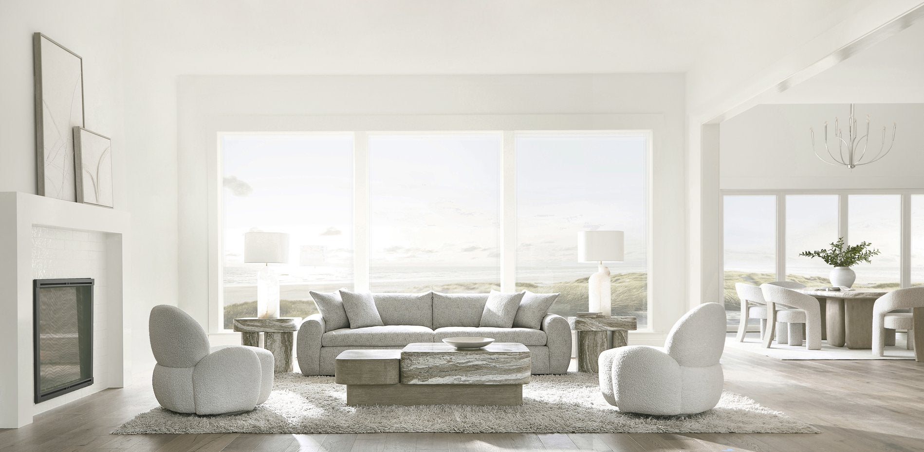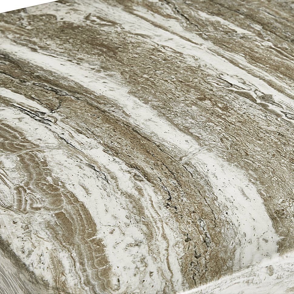 Elevate your living space with the Arcadia side table, where modern primitive design meets durable craftsmanship. Its faux stone top with organic striations and sculptural leg forms create a striking focal point that complements rustic-modern interiors, while adjustable glides ensure stability on uneven floors.