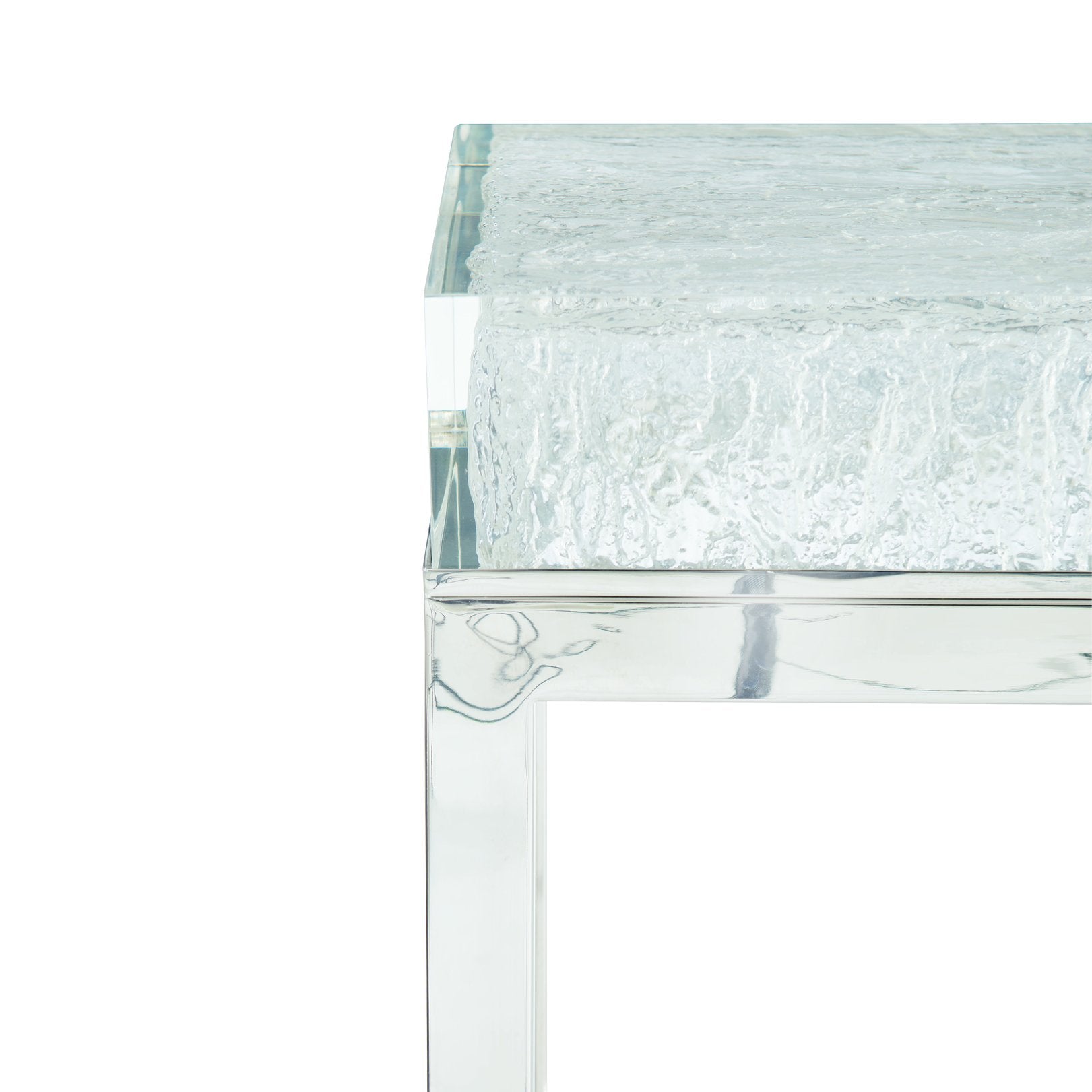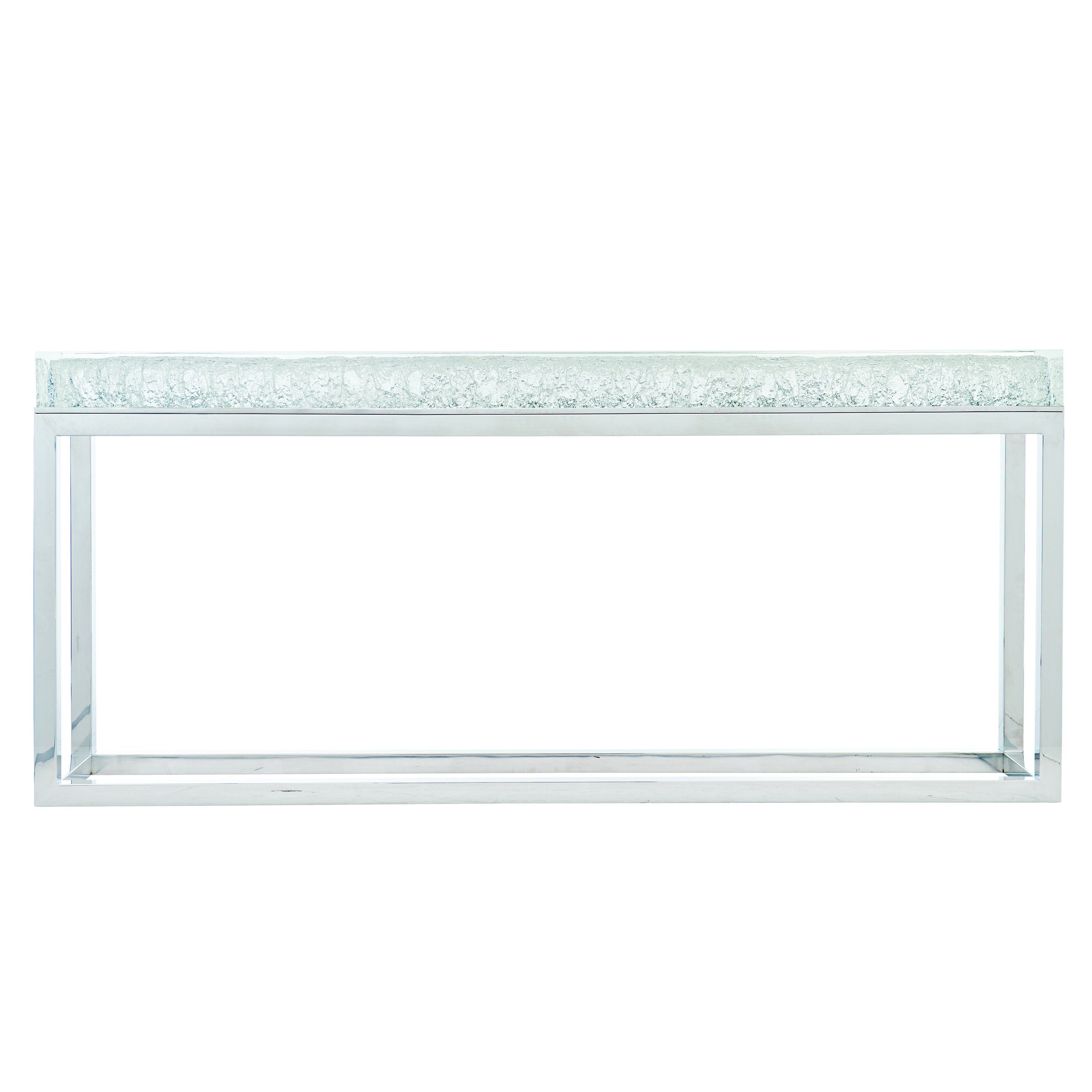 Make a striking, modern statement in your entryway or living space with this high-design console table. Its luminous acrylic top and polished stainless steel base combine to create a sculptural piece that reads like art—yet remains highly functional. Clean lines, subtle texture, and built-in safety features ensure the table is as practical as it is beautiful.