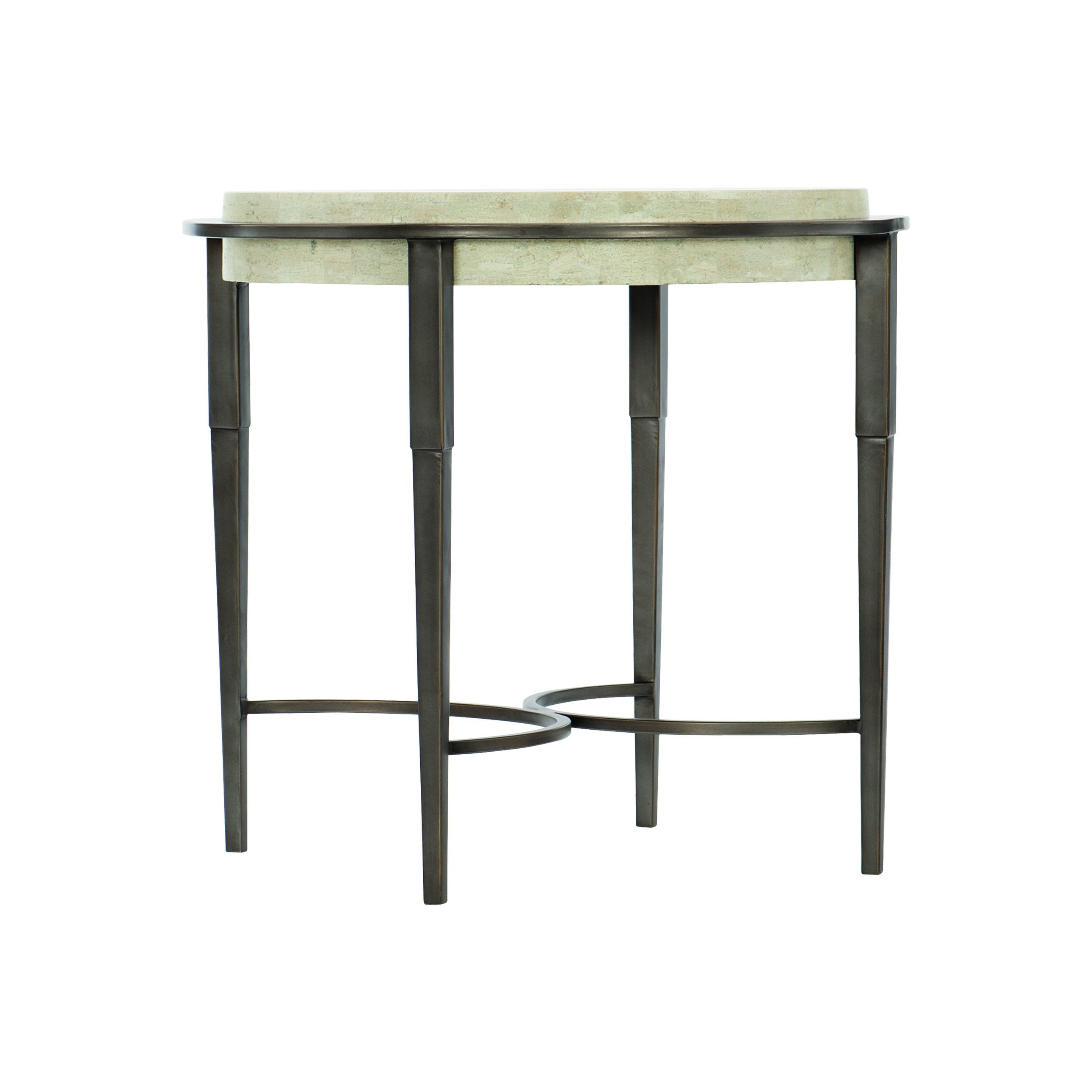 - Base & Finish: Plated steel base and semi-circular stretchers in an antique pewter finish give sculpted support and an elevated metallic contrast.