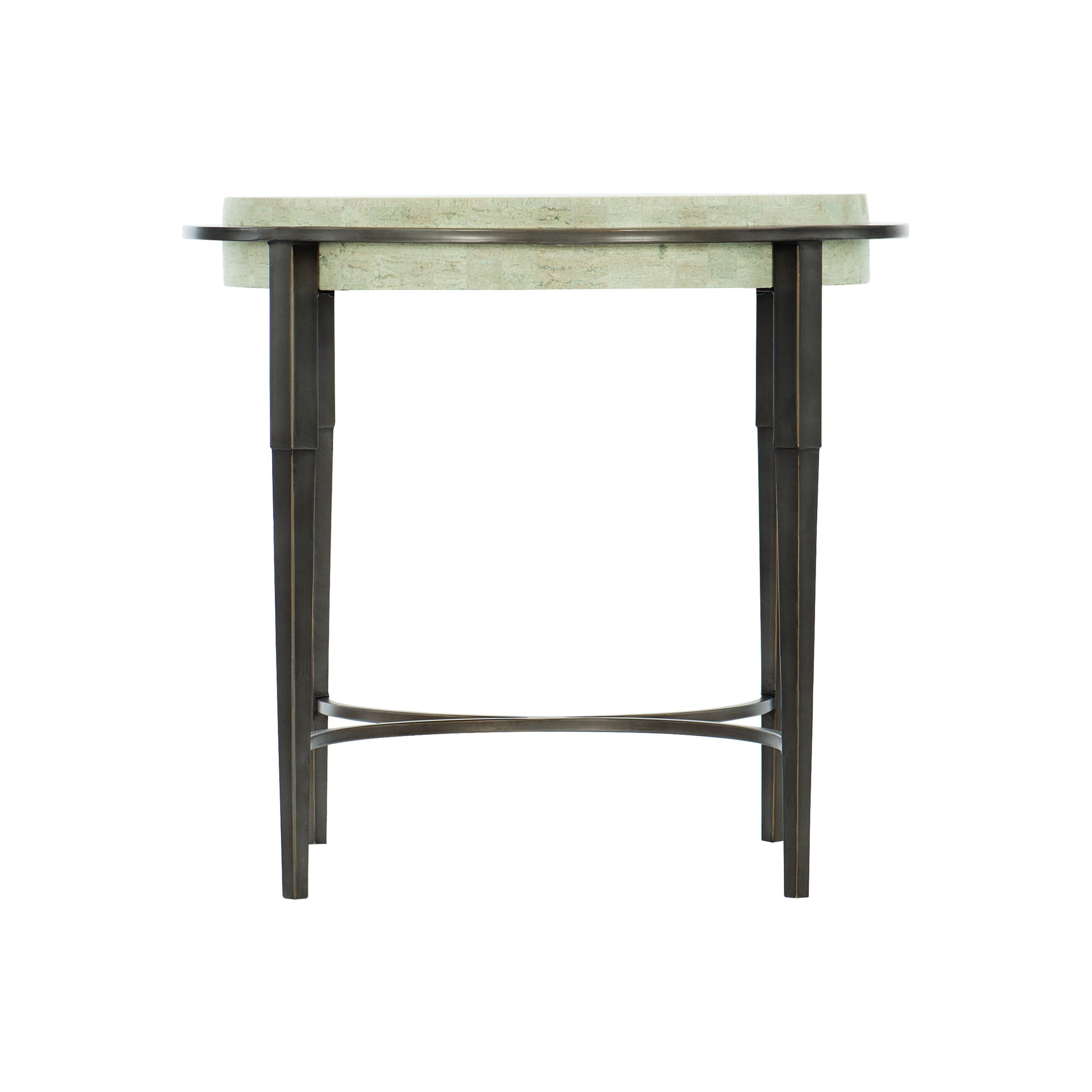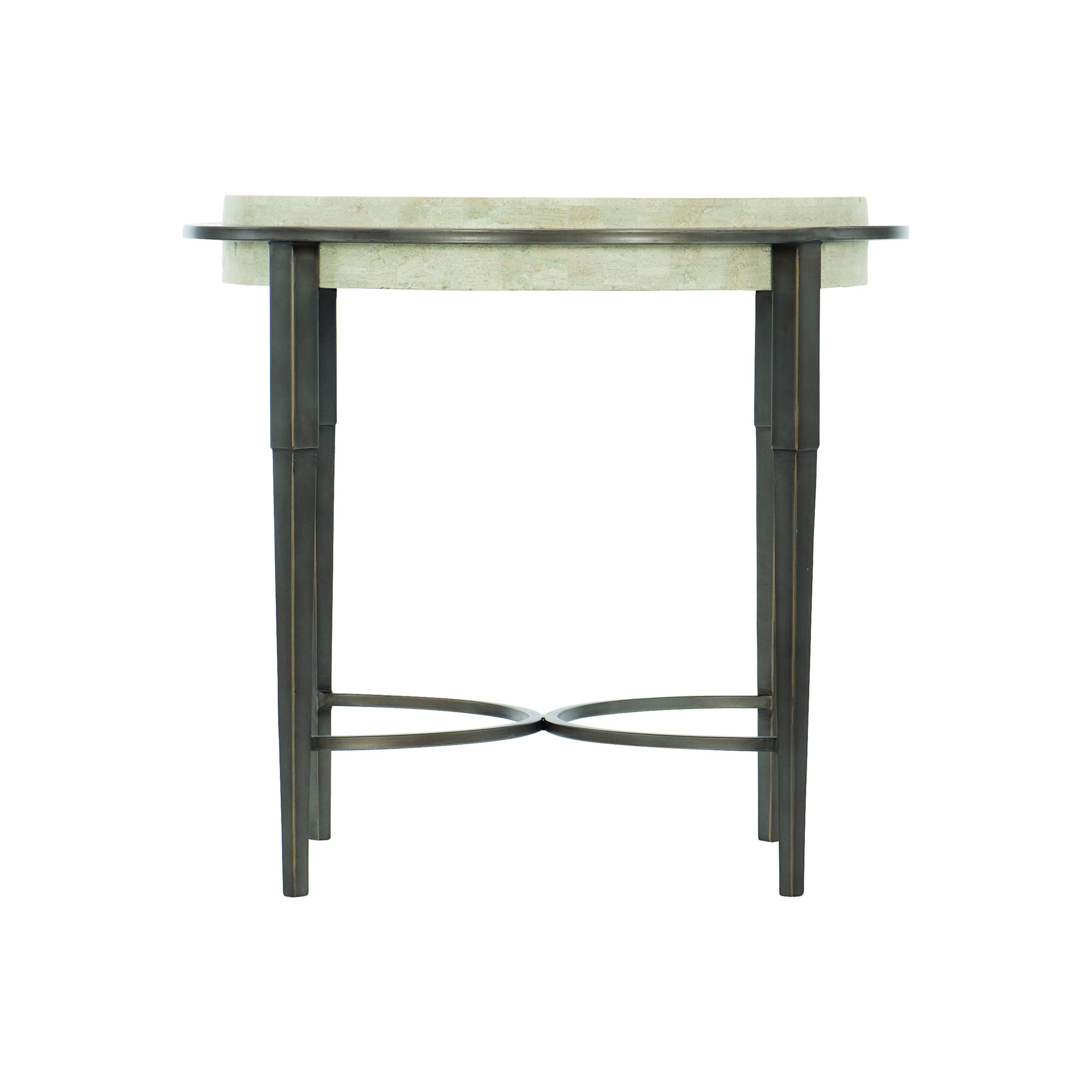 Elevate your living space with the Barclay chairside table — a refined blend of natural stone and sculpted metal that brings modern elegance and tactile warmth to any room. Its thick honed travertine top appears to float above a sculptural antique pewter–finished base, offering a versatile statement piece that complements transitional and contemporary interiors.