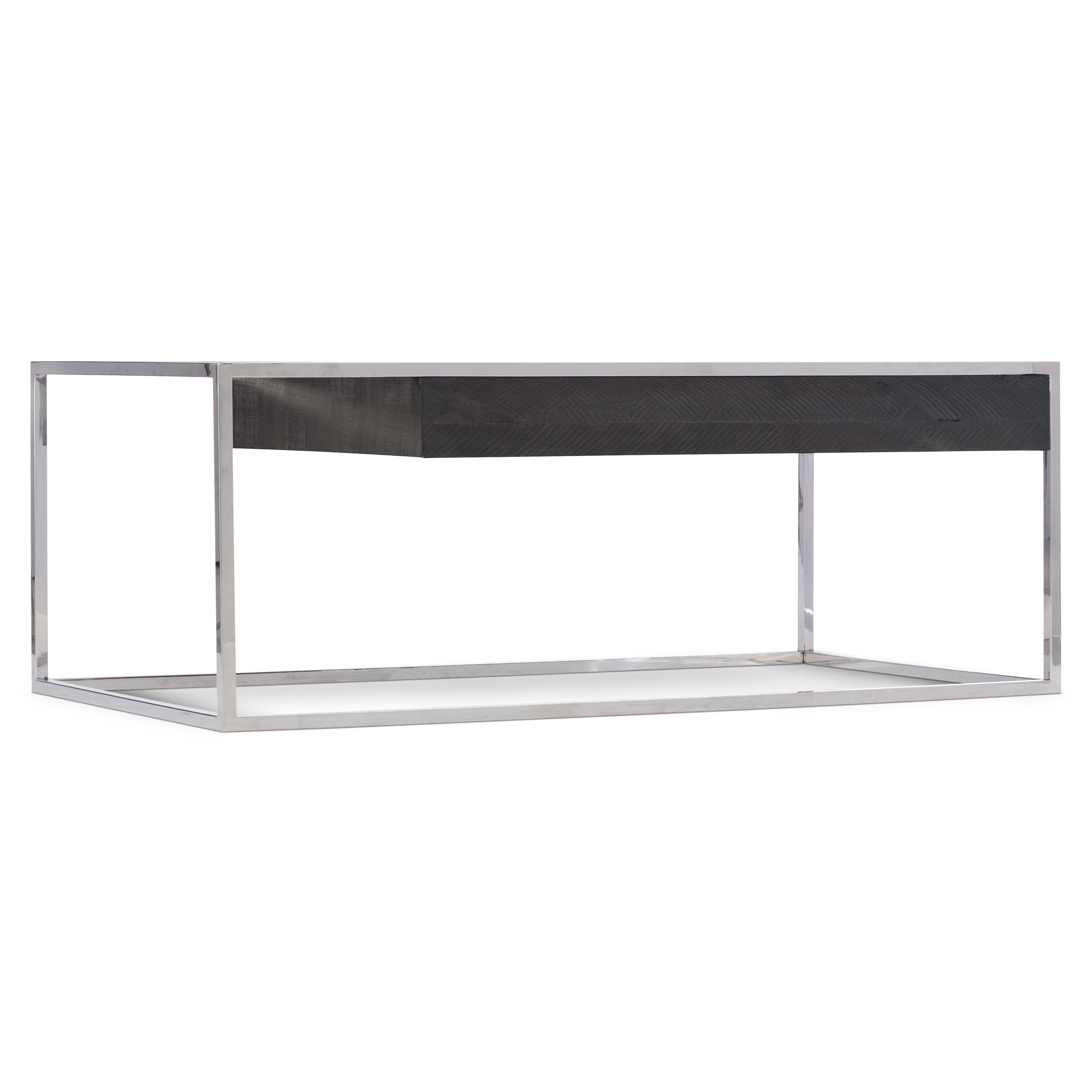 Elevate your living space with a striking balance of rugged warmth and polished modernity. This cocktail table pairs a distressed pine drawer box with a sleek stainless steel frame to create an eye-catching, asymmetrical centerpiece that suits contemporary and urban interiors. Thoughtful details—like the off-center suspended box and adjustable glides—add both visual interest and everyday functionality.