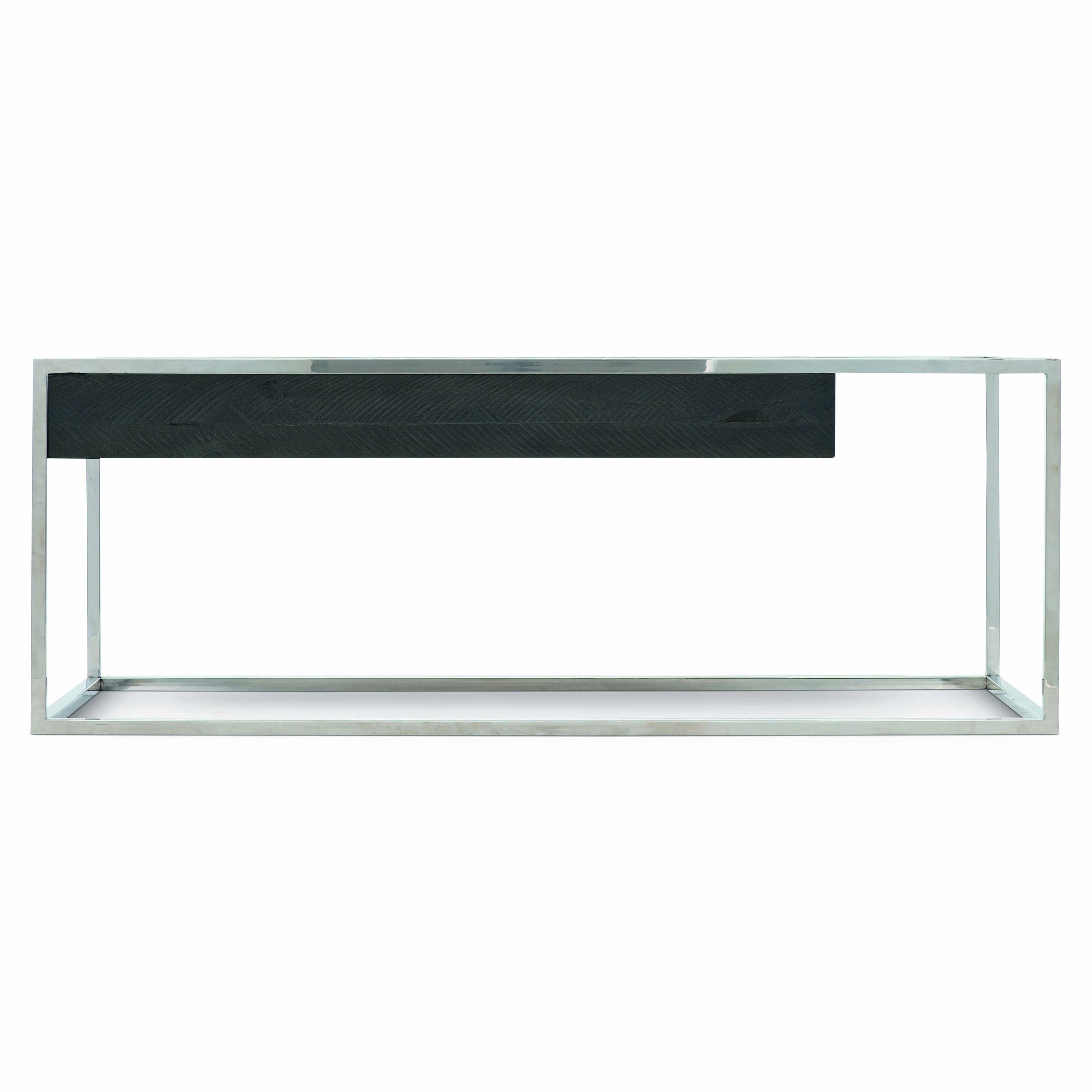- Distinctive design: tubular polished stainless steel frame with a suspended wood drawer box positioned off-center for a sculptural, modern silhouette