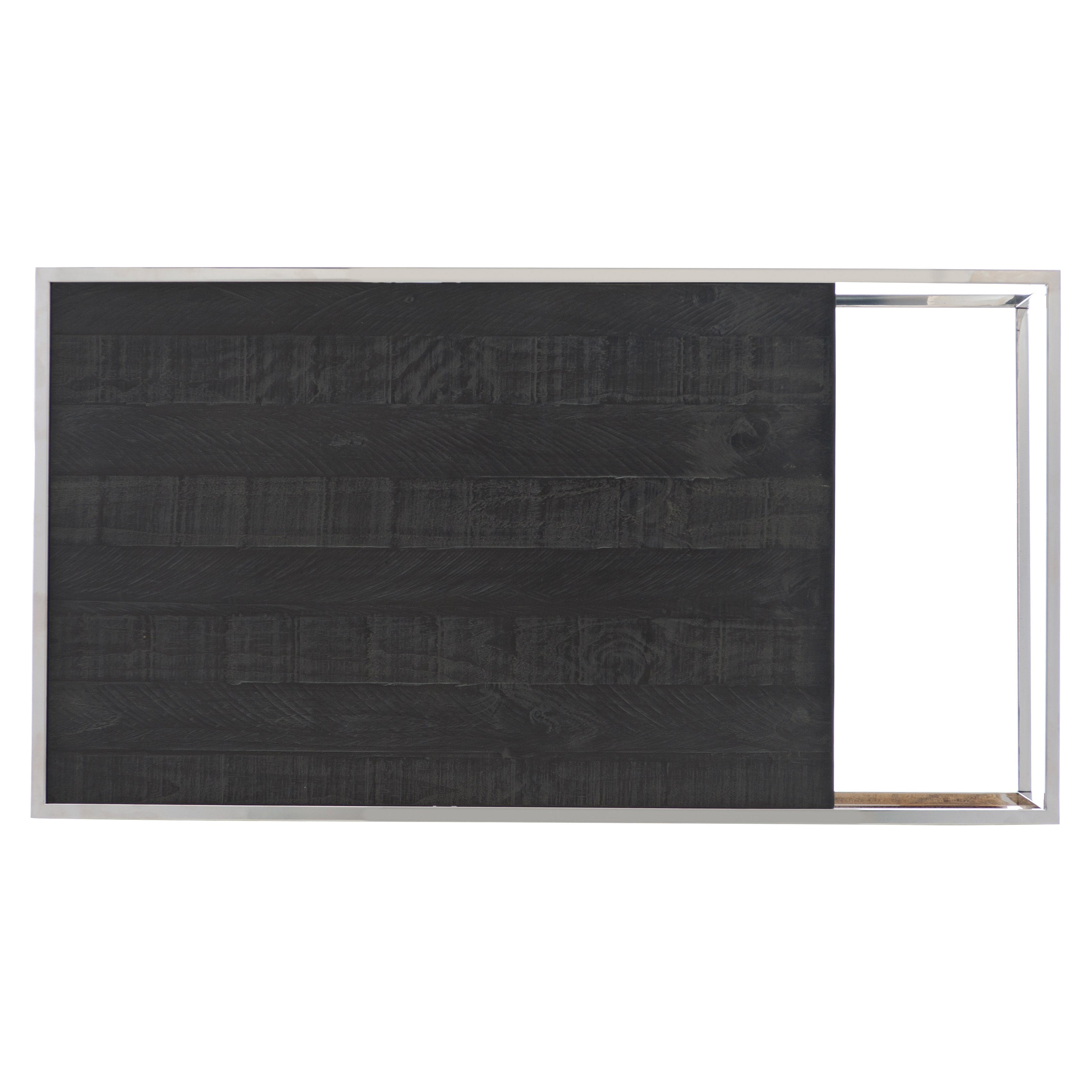- Materials & finish: distressed pine drawer box in Cinder finish contrasted with brilliant stainless steel for a moody yet refined look