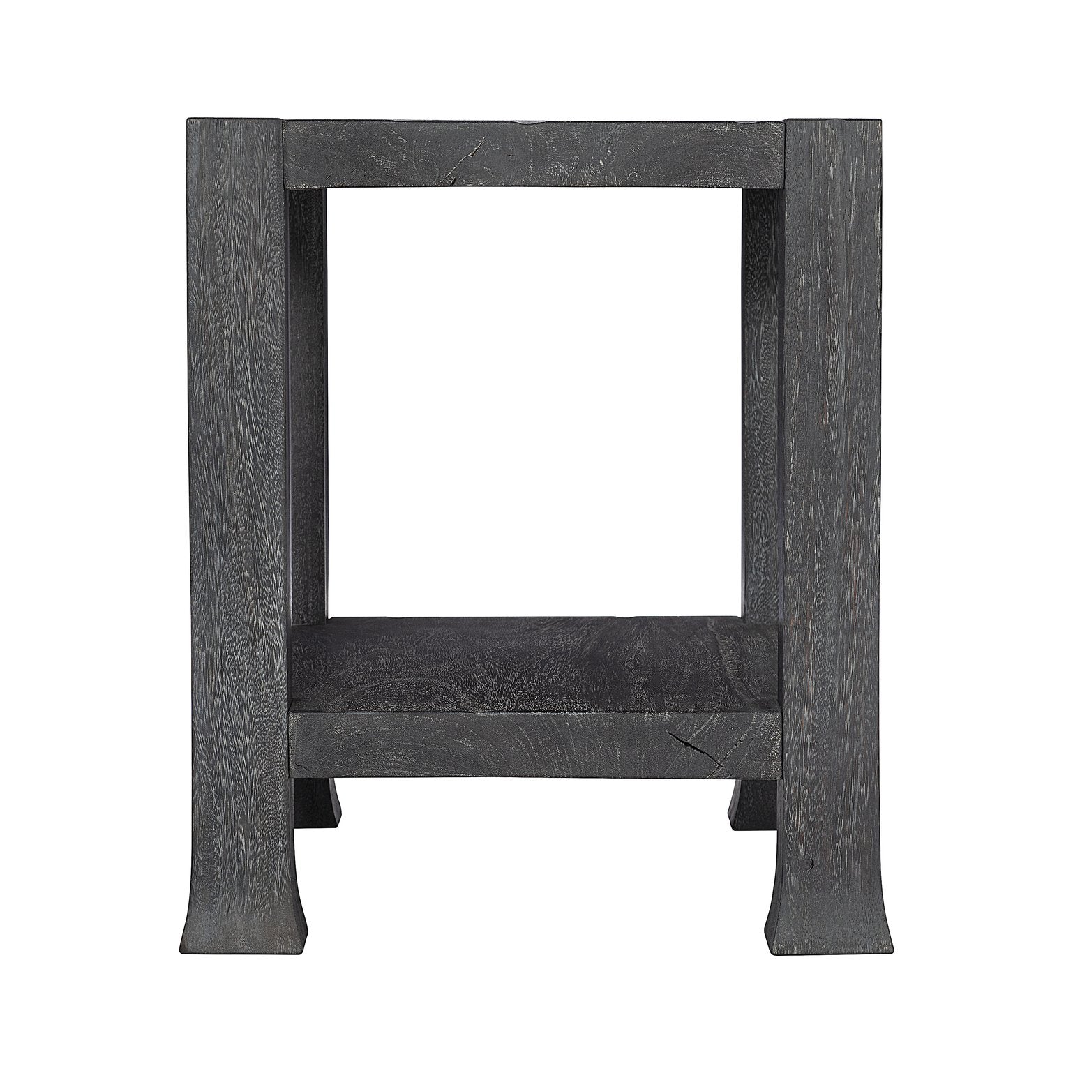 Elevate your living space with the Bernhardt Berkely side table — a sculptural accent that blends rustic craftsmanship with refined, contemporary style. Its carbonized suar wood finish and planked pattern create rich texture and depth, while practical details like an open shelf and adjustable glides make it as functional as it is striking. Ideal for transitional interiors, this piece serves beautifully beside sofas, beds, or accent chairs.