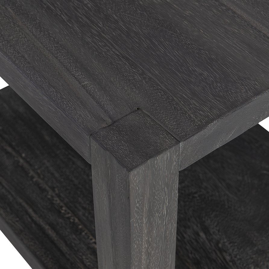 Carbonized Suar wood. Planked design top and shelf. Adjustable glides.
