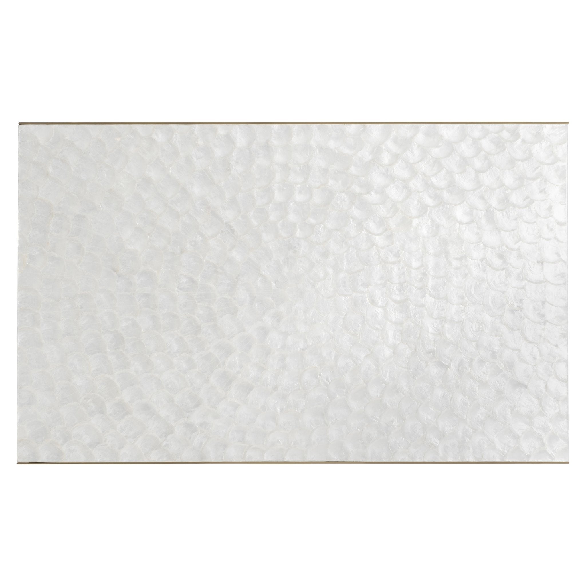 Glamorous and contemporary, this cocktail table brings refined texture and luminous detail to living spaces. Capiz shell circles form a captivating mosaic across the rectangular top, while a brass-plated stainless steel base provides polished contrast and solid support. Thoughtfully finished with adjustable glides, the table combines artisan surface interest with durable construction for everyday use or elevated entertaining.