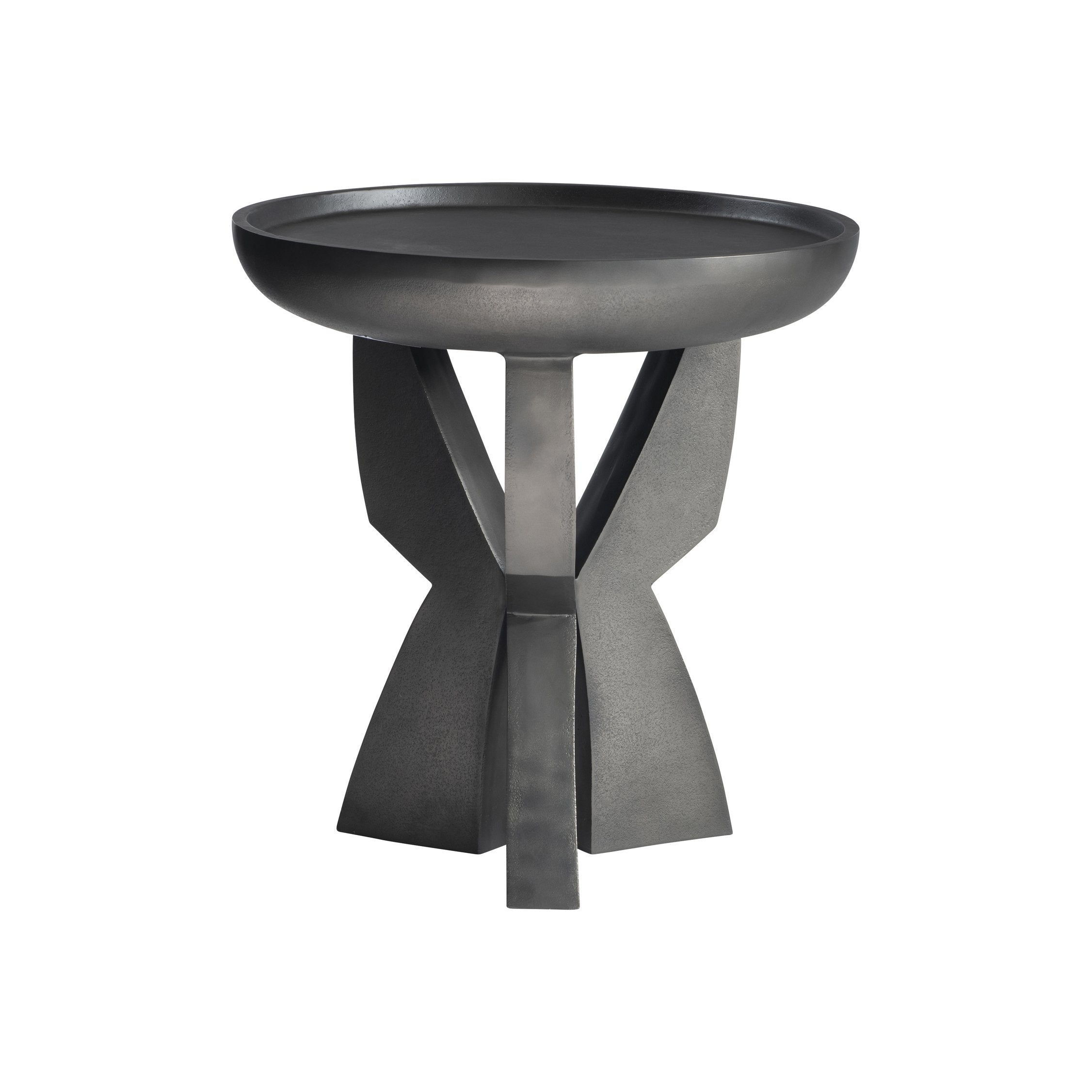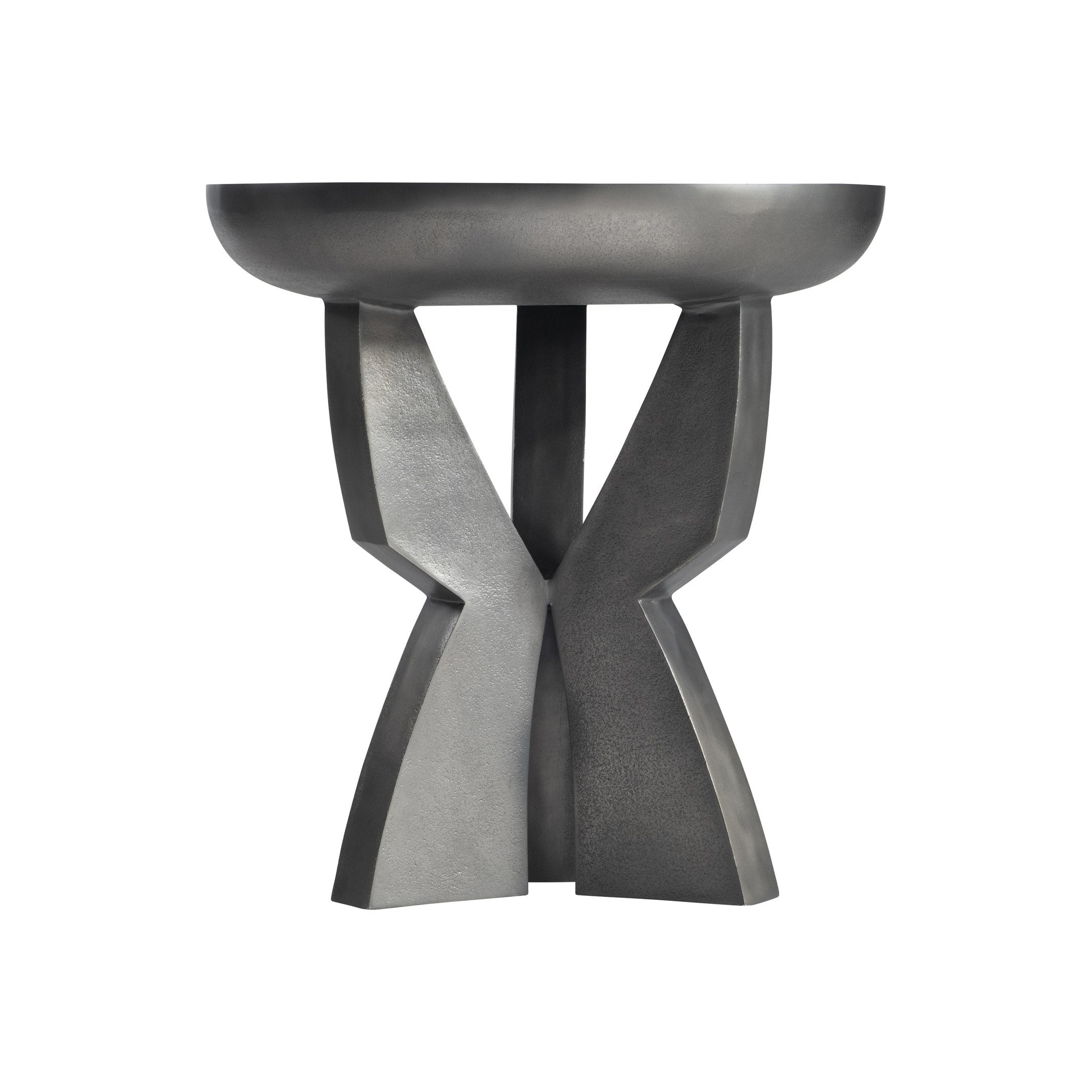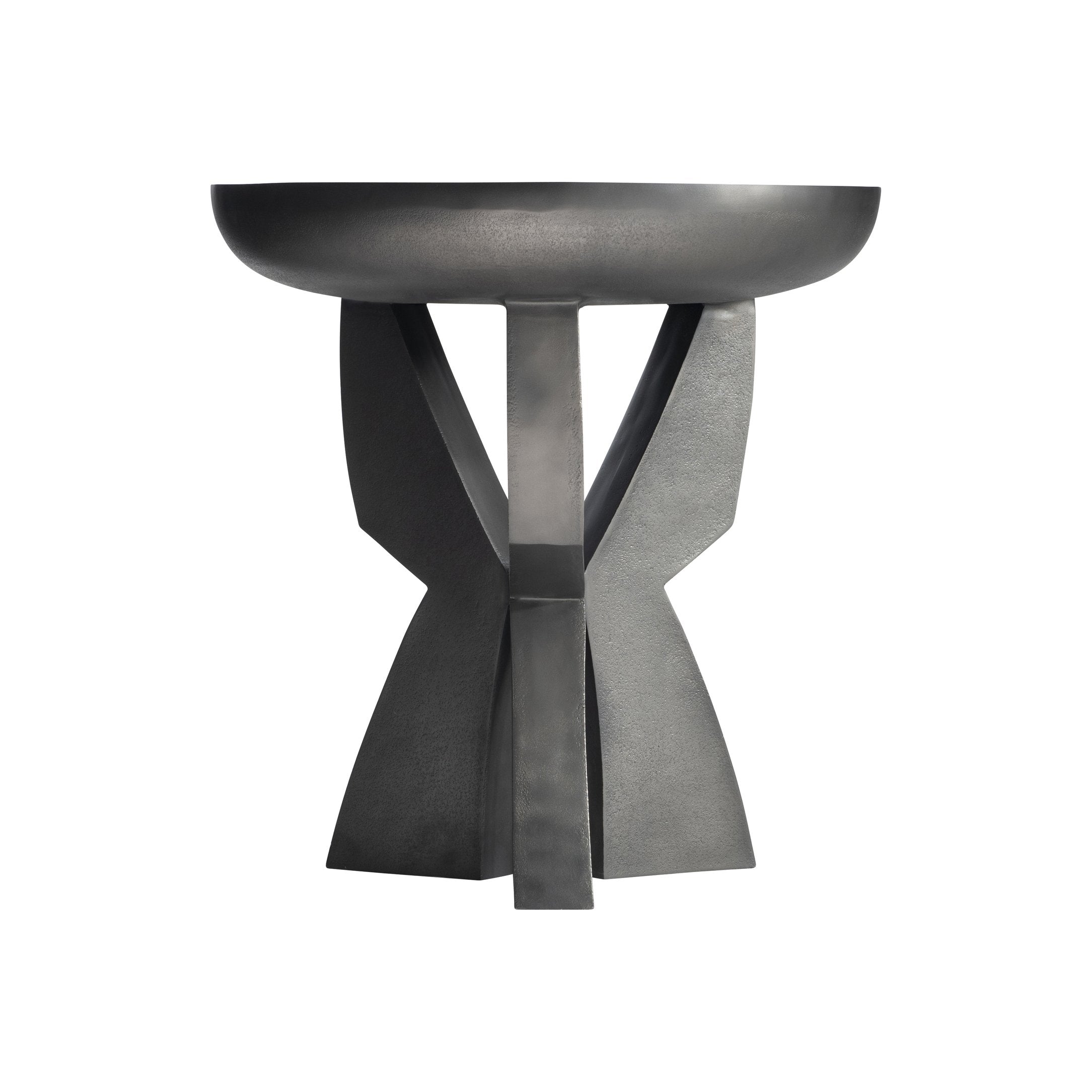 A striking blend of modern sculpture and functional design, this side table brings sculptural presence and durable materials to living rooms, lounges, or entryways. The basin-shaped top and three angled legs create a dynamic silhouette while the cast aluminum construction and finish ensure long-lasting performance and low maintenance.
