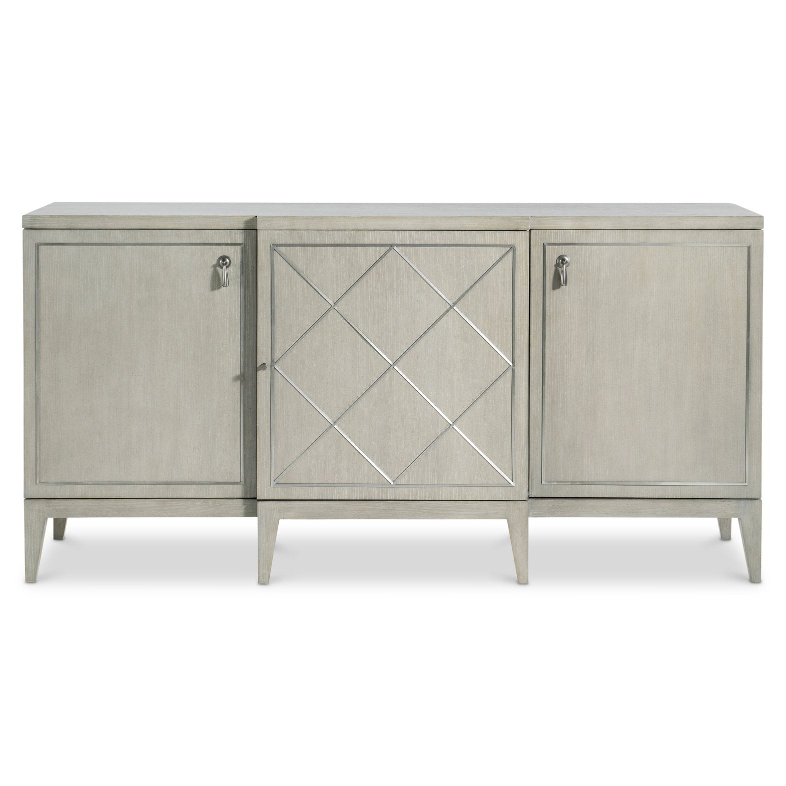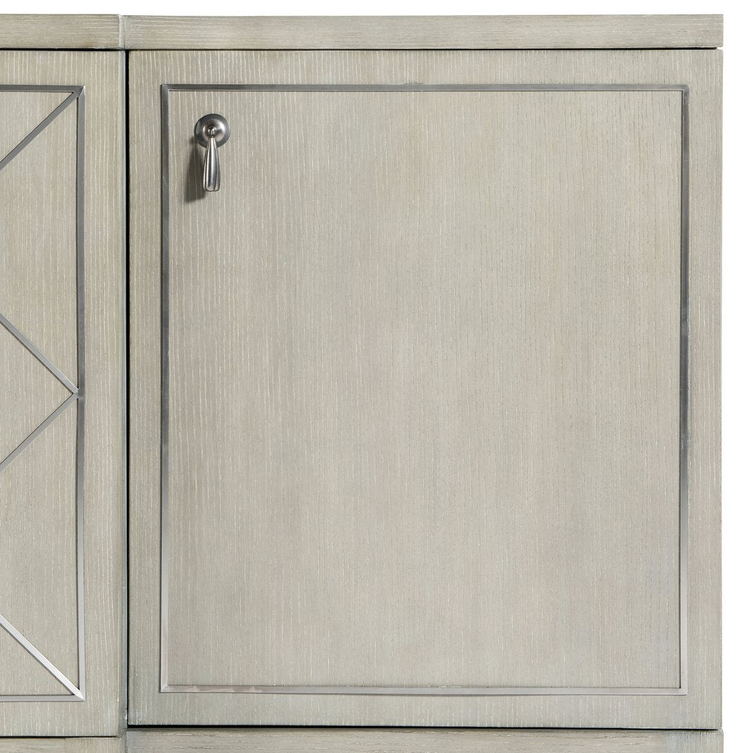 Elevate your dining or living space with the Cornelia buffet—where refined materials meet thoughtful functionality. The Nebbia-finished ash case provides a warm, understated backdrop for lustrous stainless-steel accents, including a striking diamond-pattern center overlay and subtly detailed side inlays. Soft-close doors, adjustable shelving, and elegant pendant pulls make this piece as practical as it is polished, fitting seamlessly into neo-traditional and contemporary interiors.