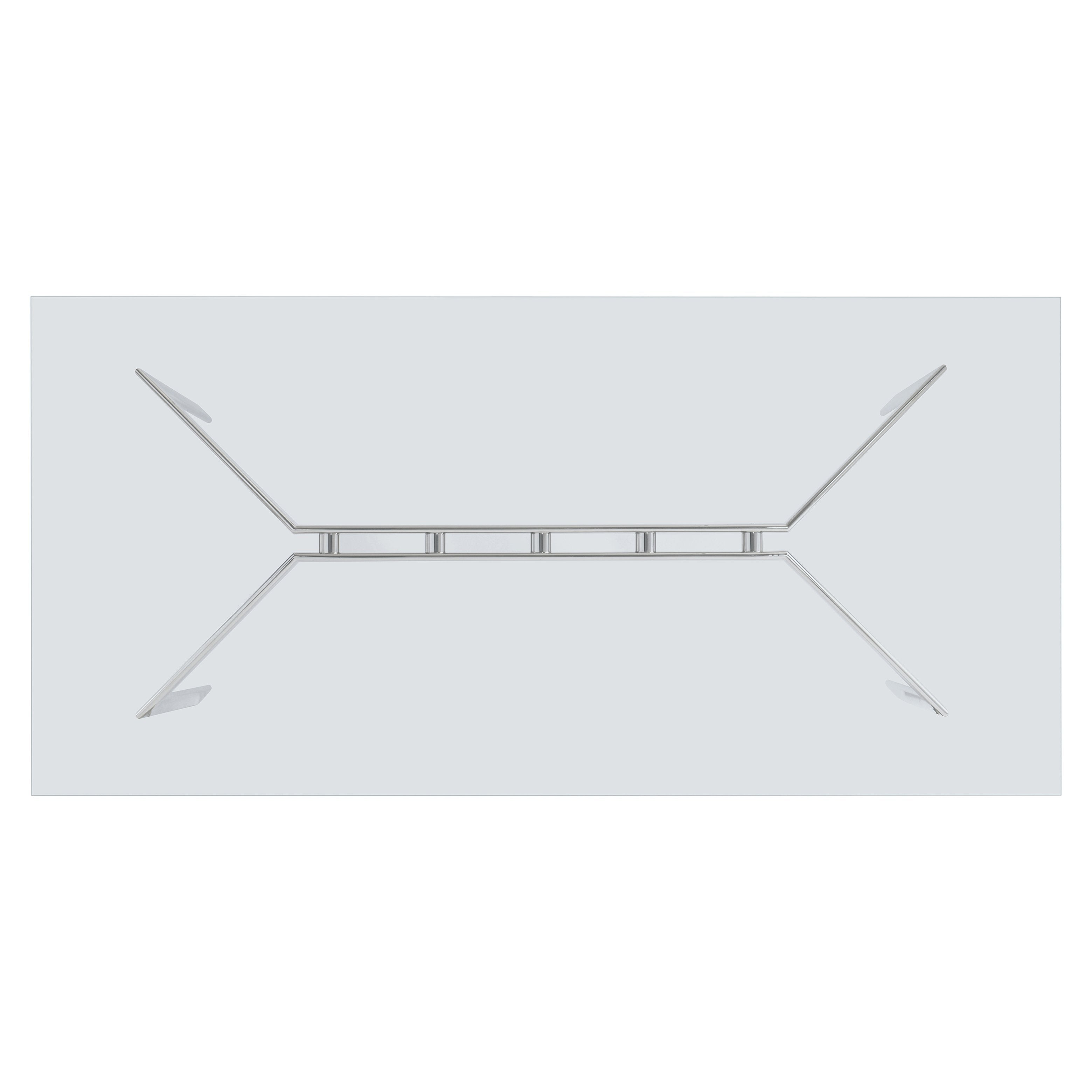 Make a contemporary statement in your dining space with a refined blend of gleaming metal and clear glass. The Cristobal dining table pairs a polished stainless steel base and sculptural Y-shaped supports with a large rectangular glass top to create an airy yet substantial focal point that works equally well in modern and transitional interiors.