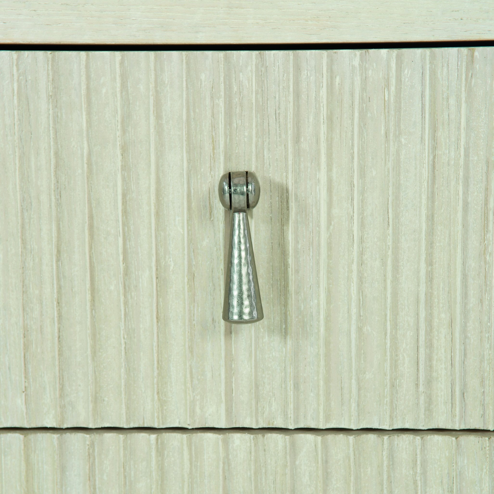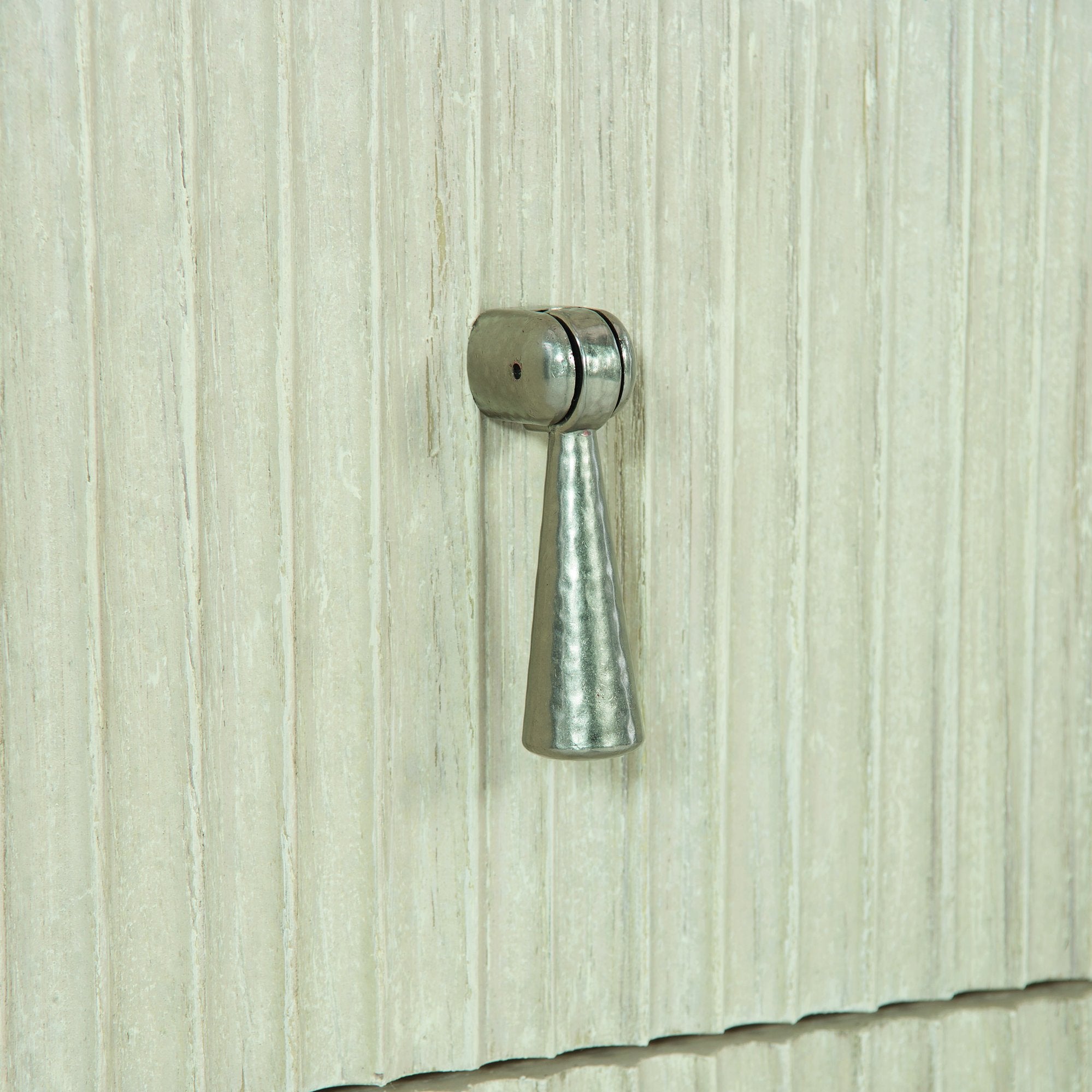 - Hardware: Tapered drop pulls in Aged Silver with a delicate luster that complements the finish