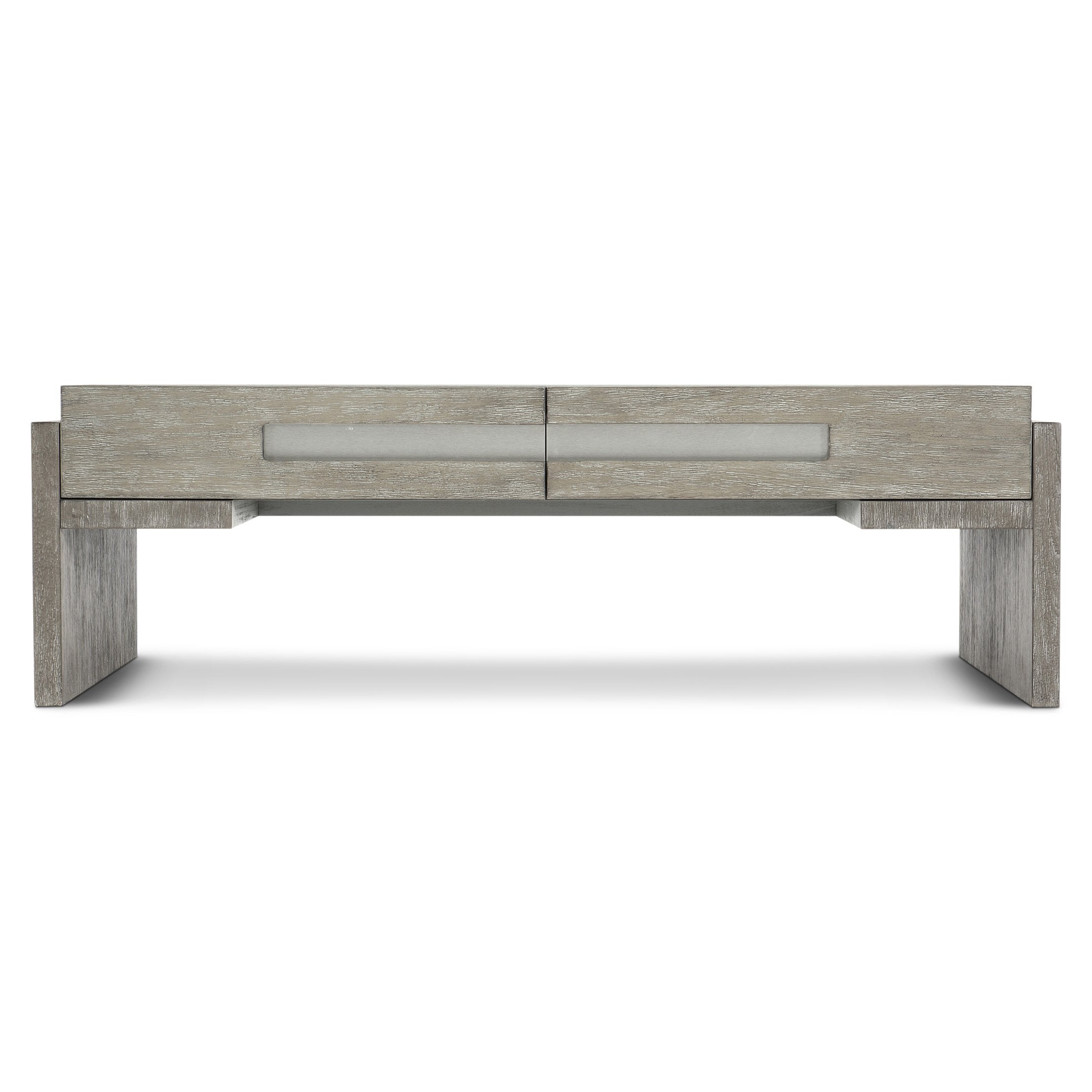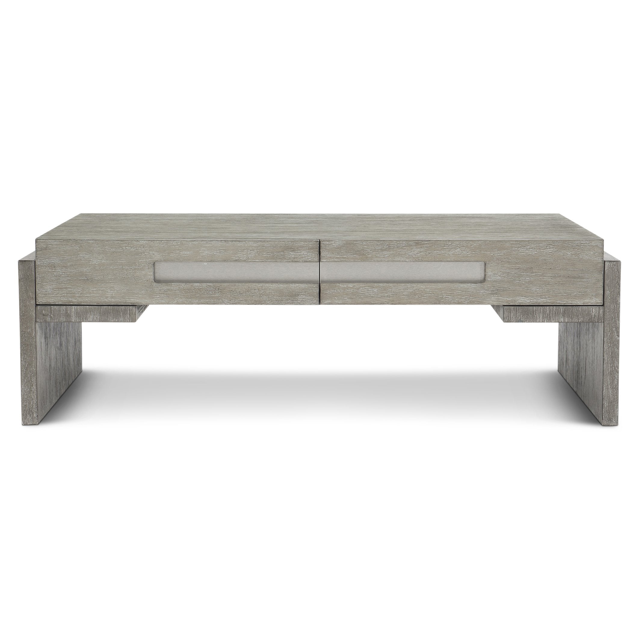 Foundations blends modern minimalism with rustic warmth to create a versatile cocktail table that anchors living spaces with quiet sophistication. Clean, intersecting planes and a two-tone cerused acacia finish give this piece visual depth, while subtle metal accents and thoughtful storage make it both stylish and functional for everyday use.