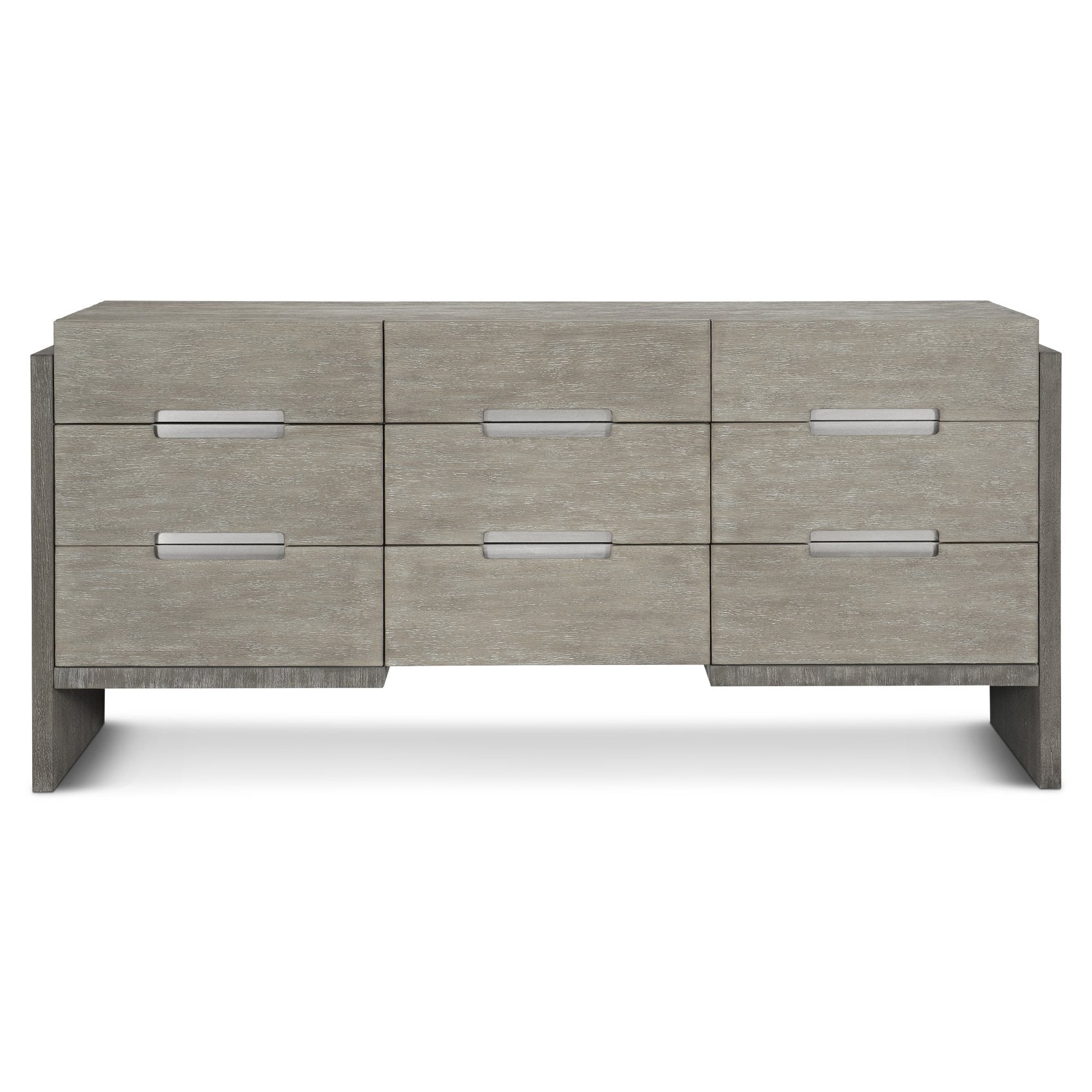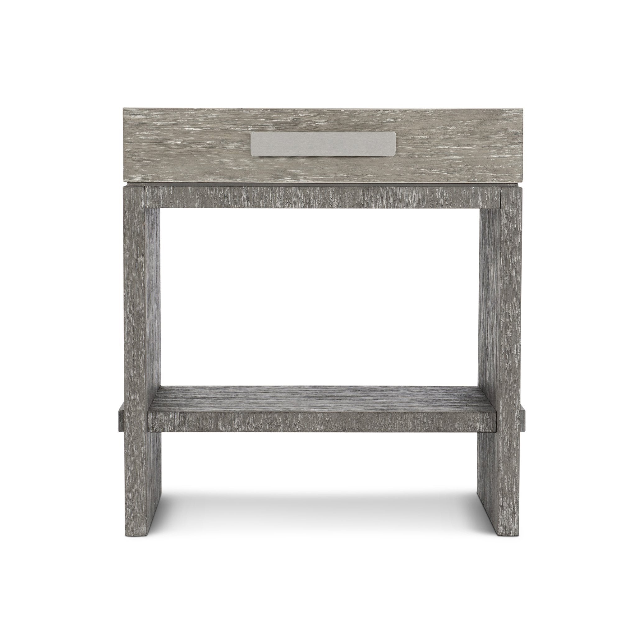 Foundations blends modern minimalism with rustic warmth to create a nightstand that feels both current and comfortably lived-in. Crafted from cerused, wire-brushed acacia and finished in layered gray tones, it delivers clean-lined sophistication with subtle texture—ideal for contemporary bedrooms seeking a relaxed, refined look.