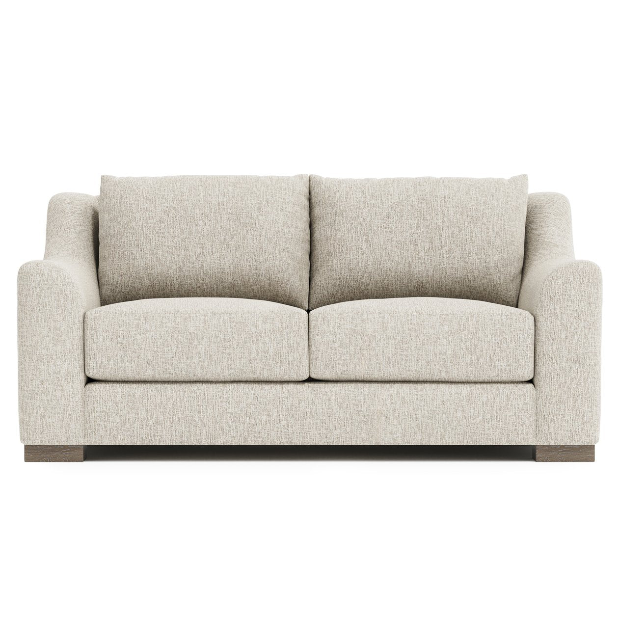Sink into the sumptuous comfort of the Gabi fabric loveseat, a made-to-order piece that marries modern curves with timeless craftsmanship. Its sweeping, oversized arms and deep seat cushions create an inviting silhouette, while knife-edge back pillows deliver tailored support. Elevated on exposed wood block feet, this loveseat brings bold presence and refined detail to living rooms, lounges, or seating groupings.