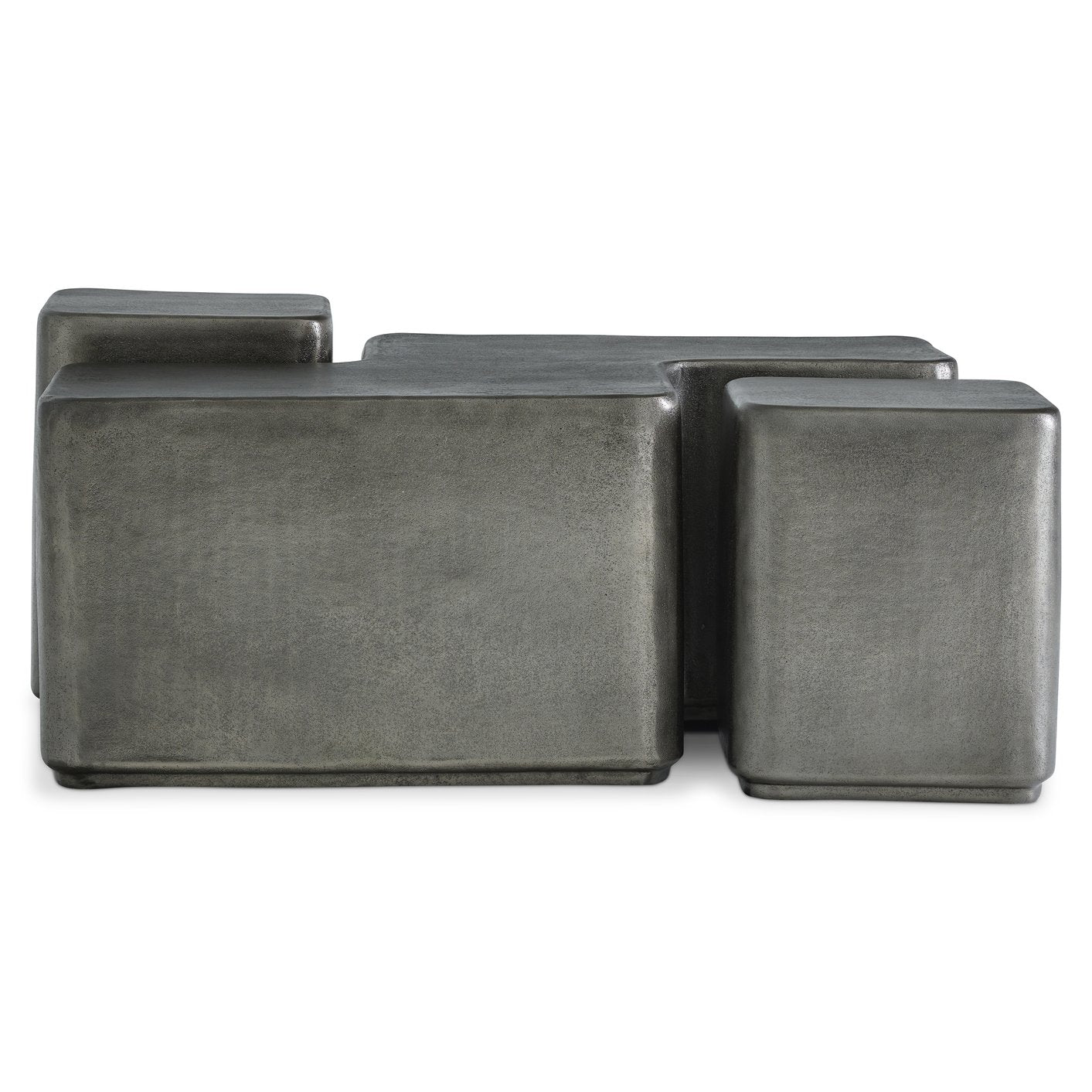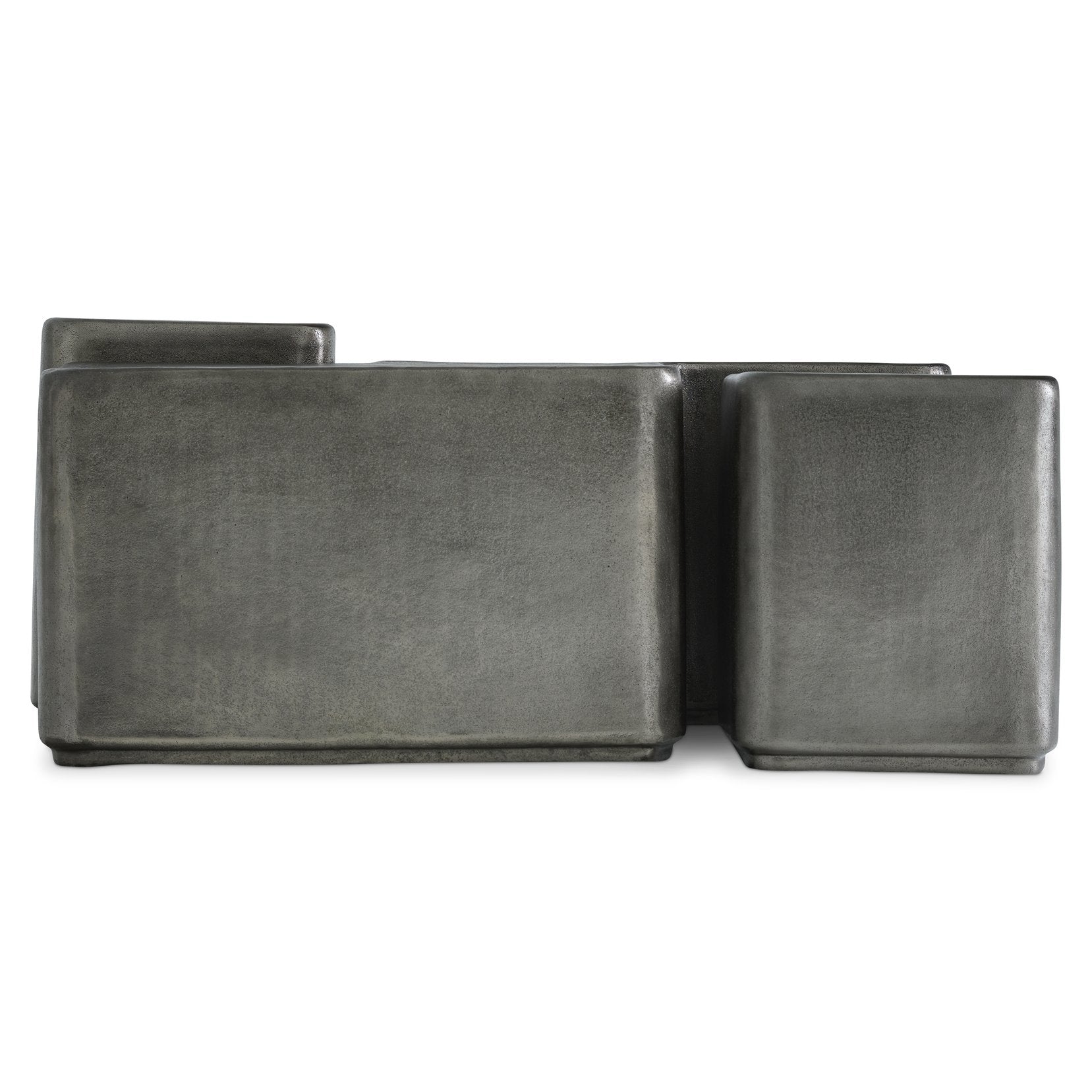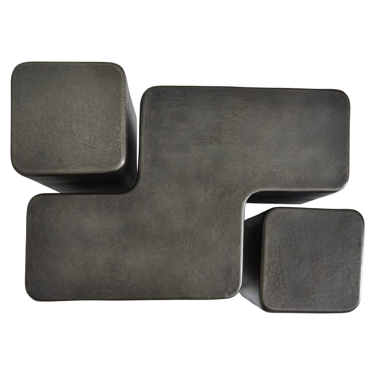 Sleek and sculptural, the Juri accent table brings modern symmetry and refined texture to living rooms, lounges, or reception areas. Cast in graphite-finished aluminum, its rounded profile and plinth base create a compact yet substantial presence that works beautifully as a standalone piece or grouped with coordinating tables for a cohesive, interlocking display.