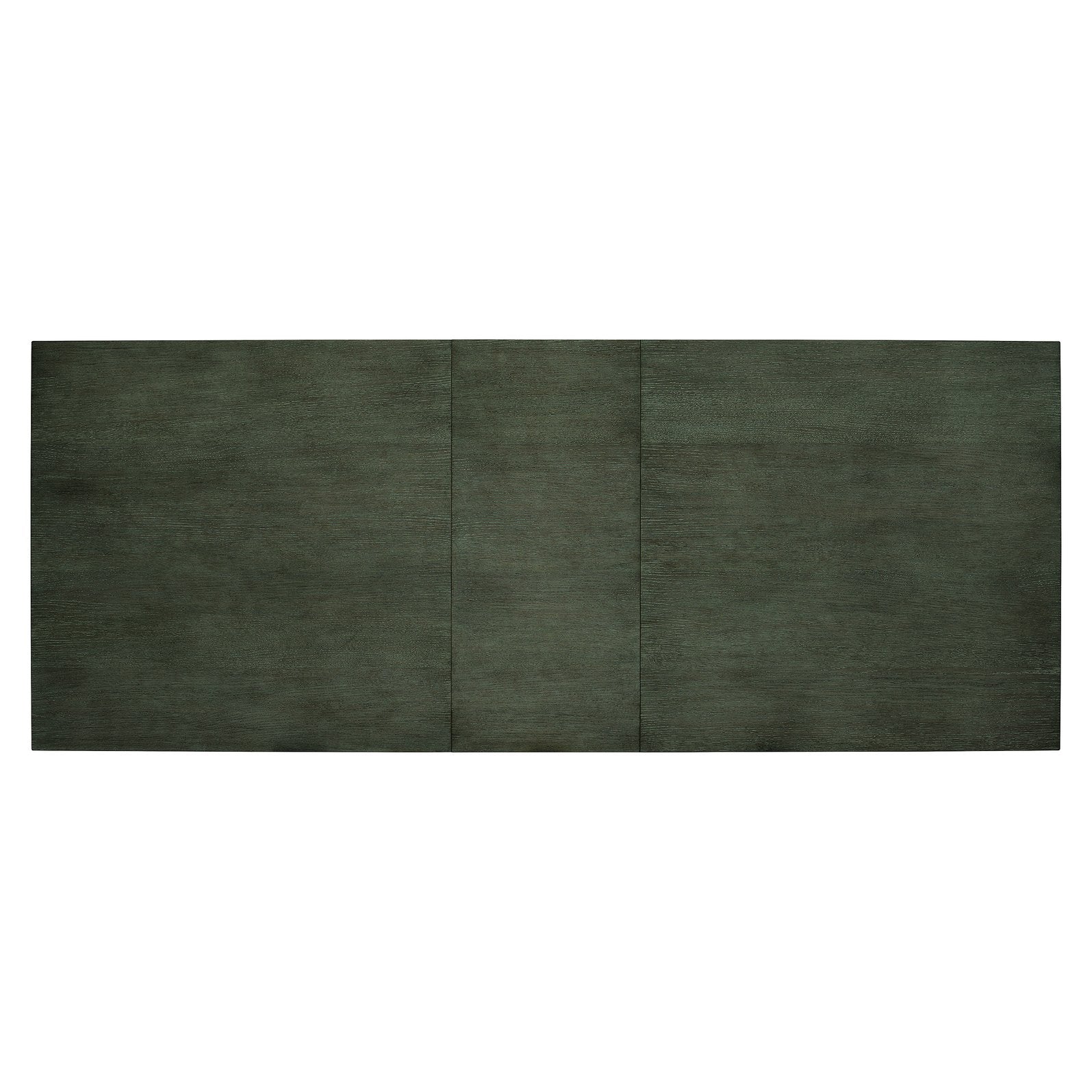 - Materials & finish: Ash solids and White Oak veneer with a cerused charcoal finish that highlights the wire‑brushed oak grain; cast aluminum bead trim around the apron bottom and double pedestal base.