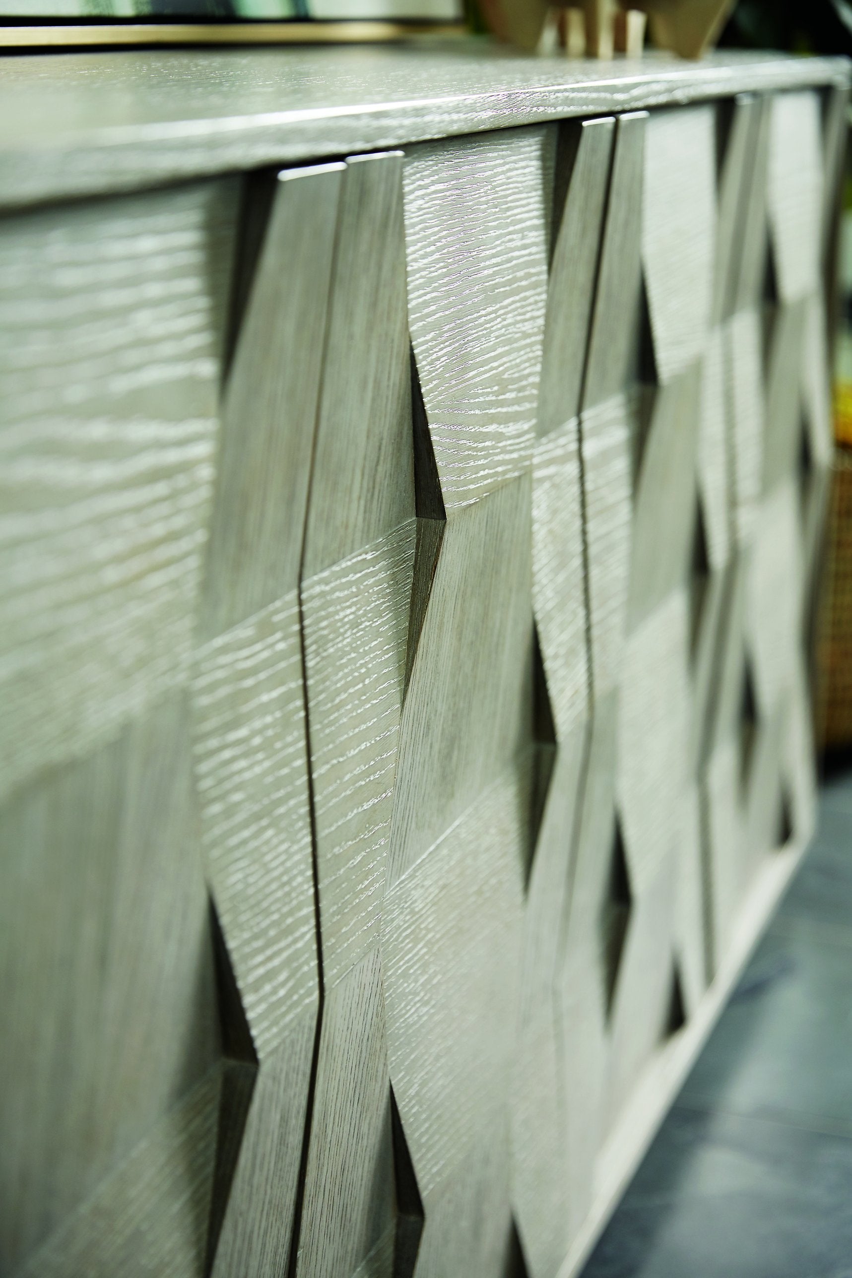 - Finish & Materials: Wire-brushed oak veneers in a Cerused Greige finish for subtle texture and a weathered, sophisticated look.