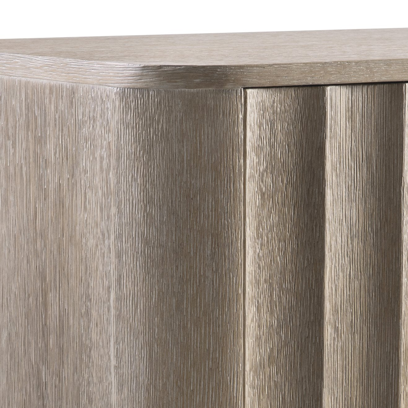 Elevate your dining or living space with the Loggia buffet — a modern statement piece that blends architectural form with practical storage. Its fluted door detailing, wire-brushed oak finish, and rounded wooden top create a refined, tactile presence while offering flexible organization for dinnerware, serving pieces, and linens.