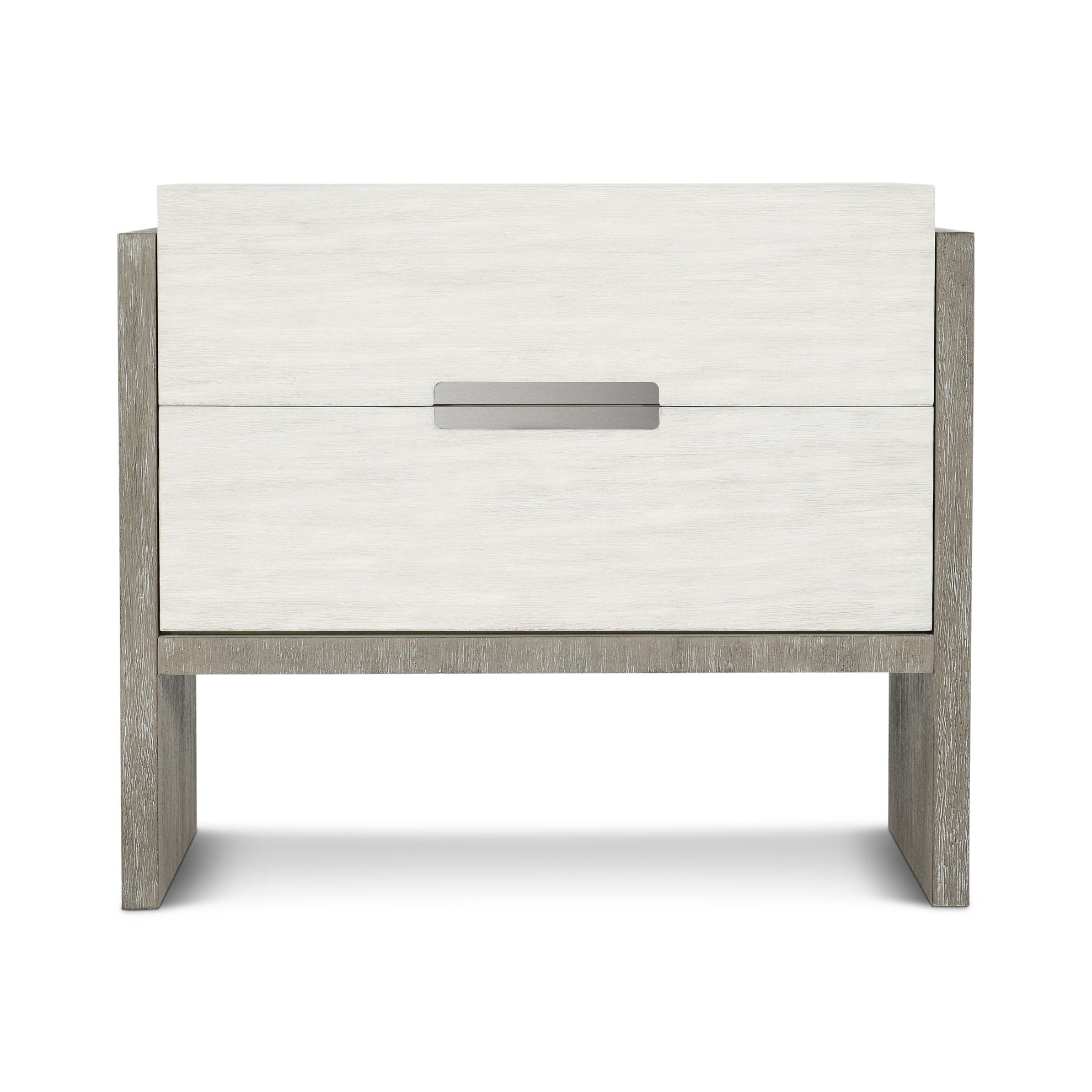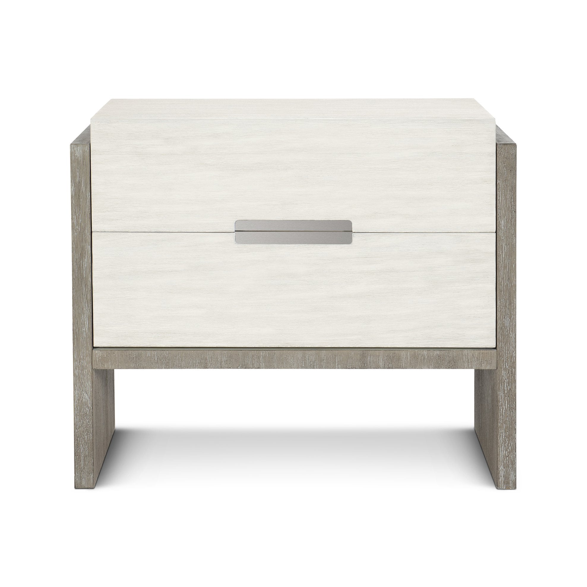 Bring calm, modern-rustic style to your bedroom with this refined 2-drawer nightstand. Clean lines, a two-tone finish, and tactile cerused acacia grain create a sophisticated yet relaxed piece that pairs easily with contemporary or rustic interiors. Thoughtful details—soft-closing drawers, integrated charging, and brushed stainless accents—make it both beautiful and highly functional.