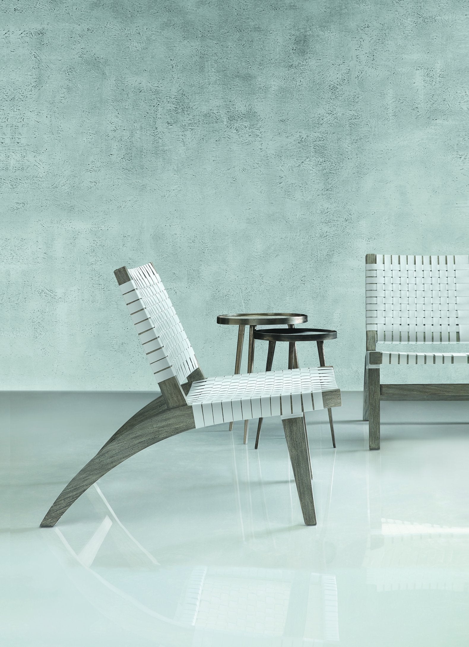 - Finishes: Large table in satin nickel and small table in graphite finish for a subtle, contemporary contrast.