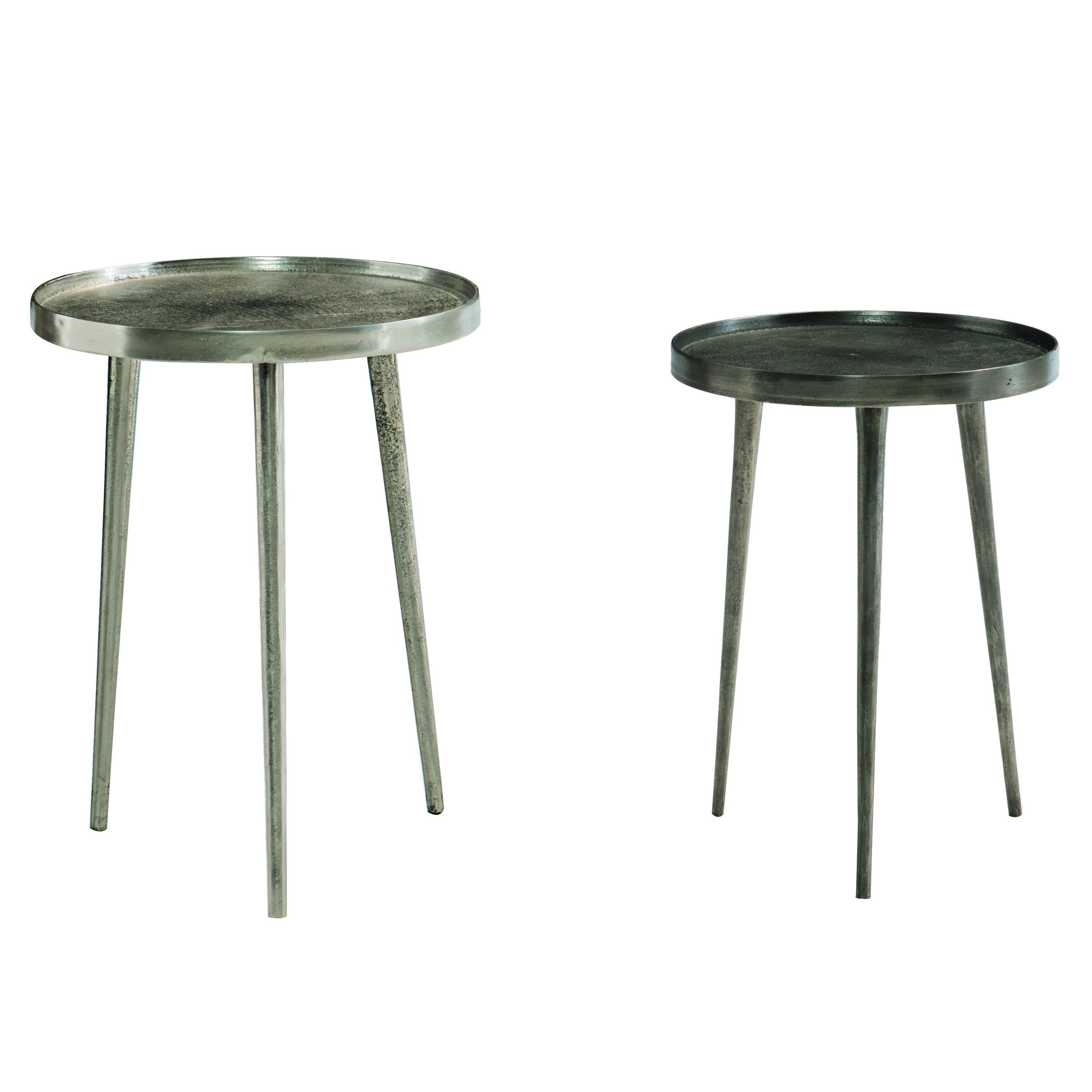 Add a touch of industrial-chic sophistication to your living space with these elegantly crafted nesting tables. Designed for both style and function, the pair offers flexibility for entertaining or everyday use — tuck the smaller table beneath the larger one to save space, or separate them as complementary accents throughout a room. High-quality cast aluminum construction and contrasting finishes create a refined yet modern look that coordinates with a variety of interiors.