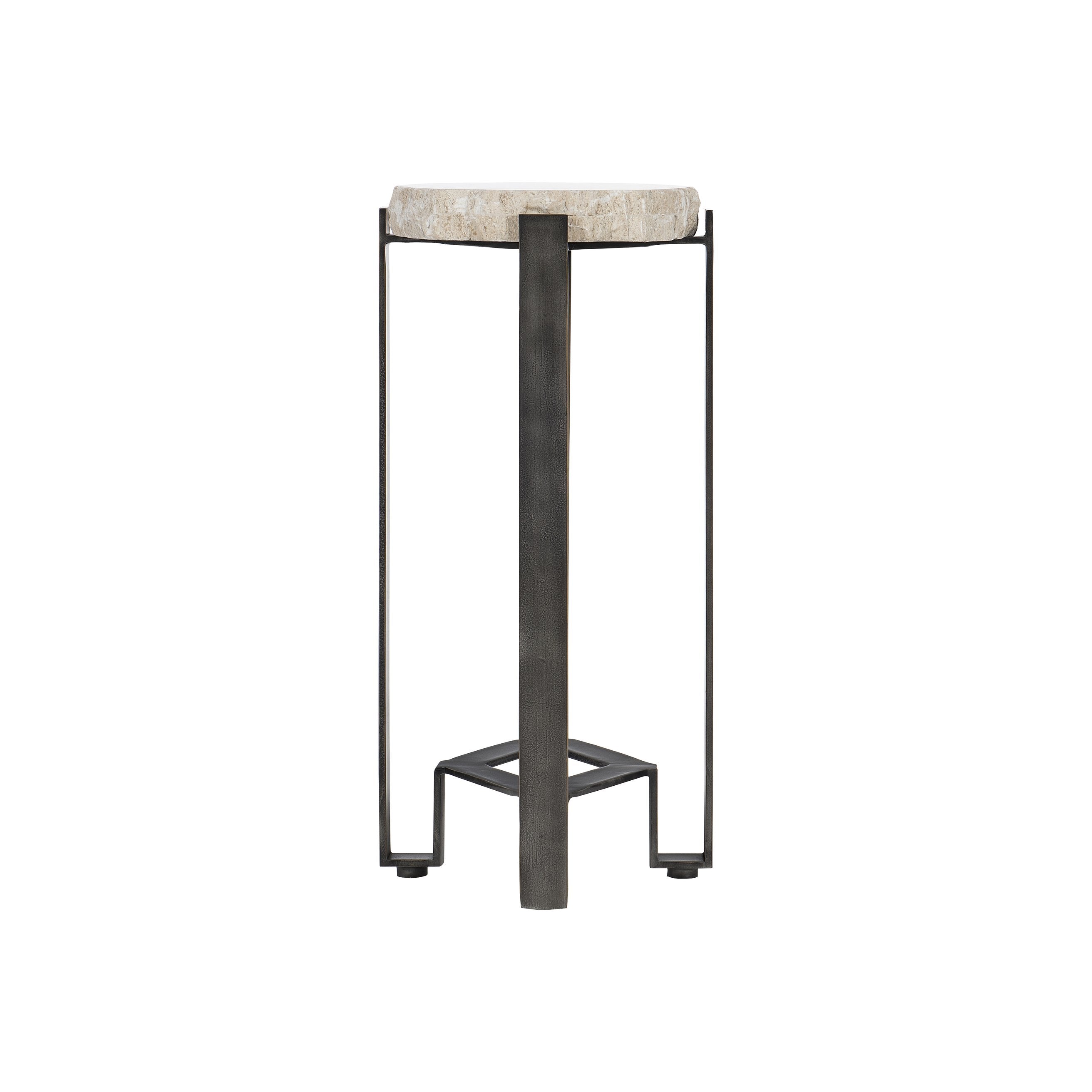 Elevate any seating area with the Sayers accent table — a refined blend of natural stone and sculptural metal that balances organic warmth with modern geometry. Its oval travertine top and angular steel base create an elegant focal point that complements both transitional and contemporary interiors.