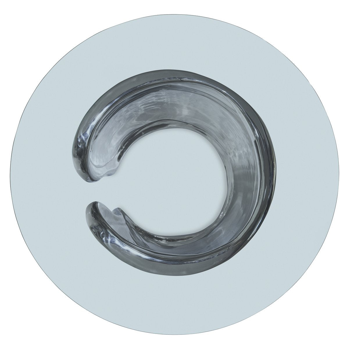 - Base: Sculpted cast metal "cuff" design forming an open circle foundation in Polished Stainless Steel finish