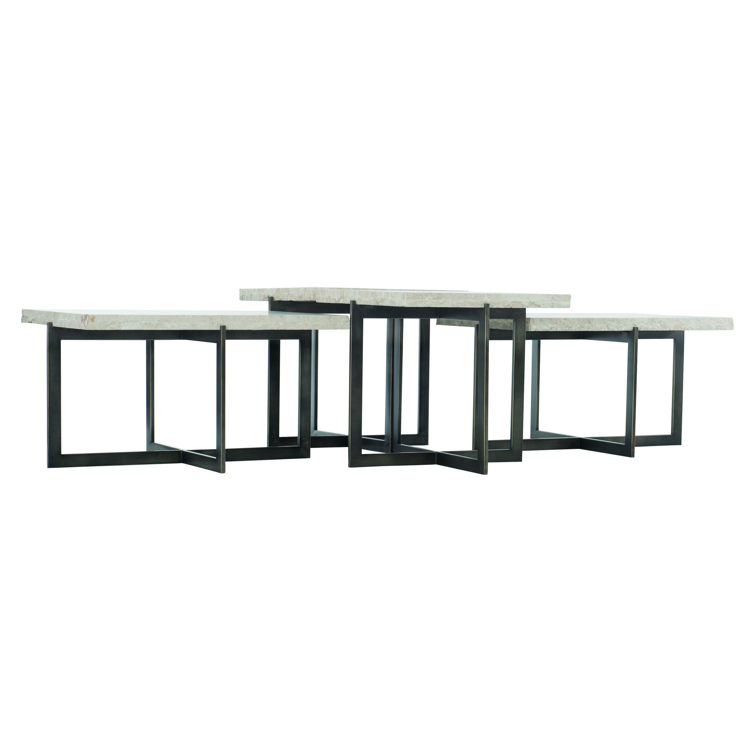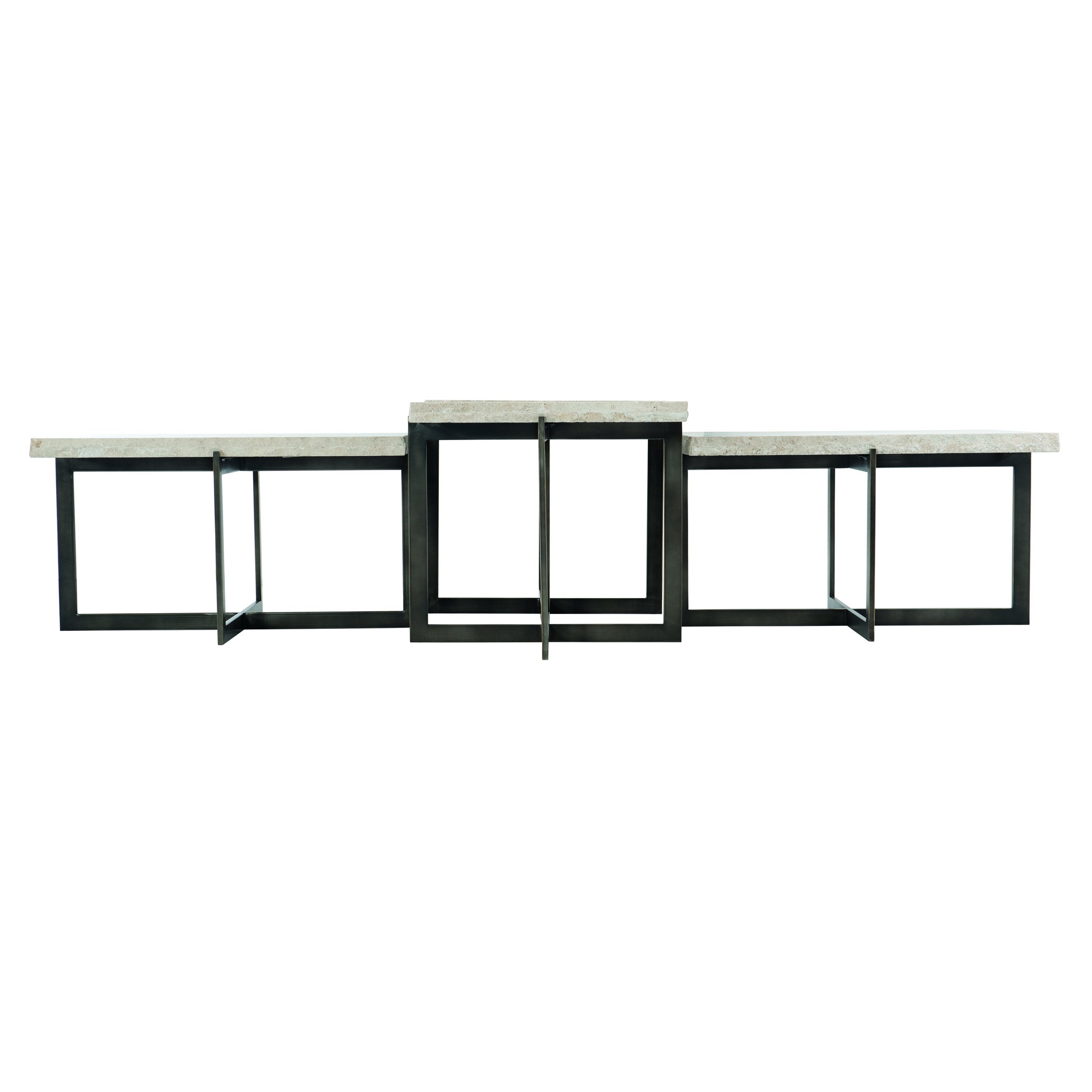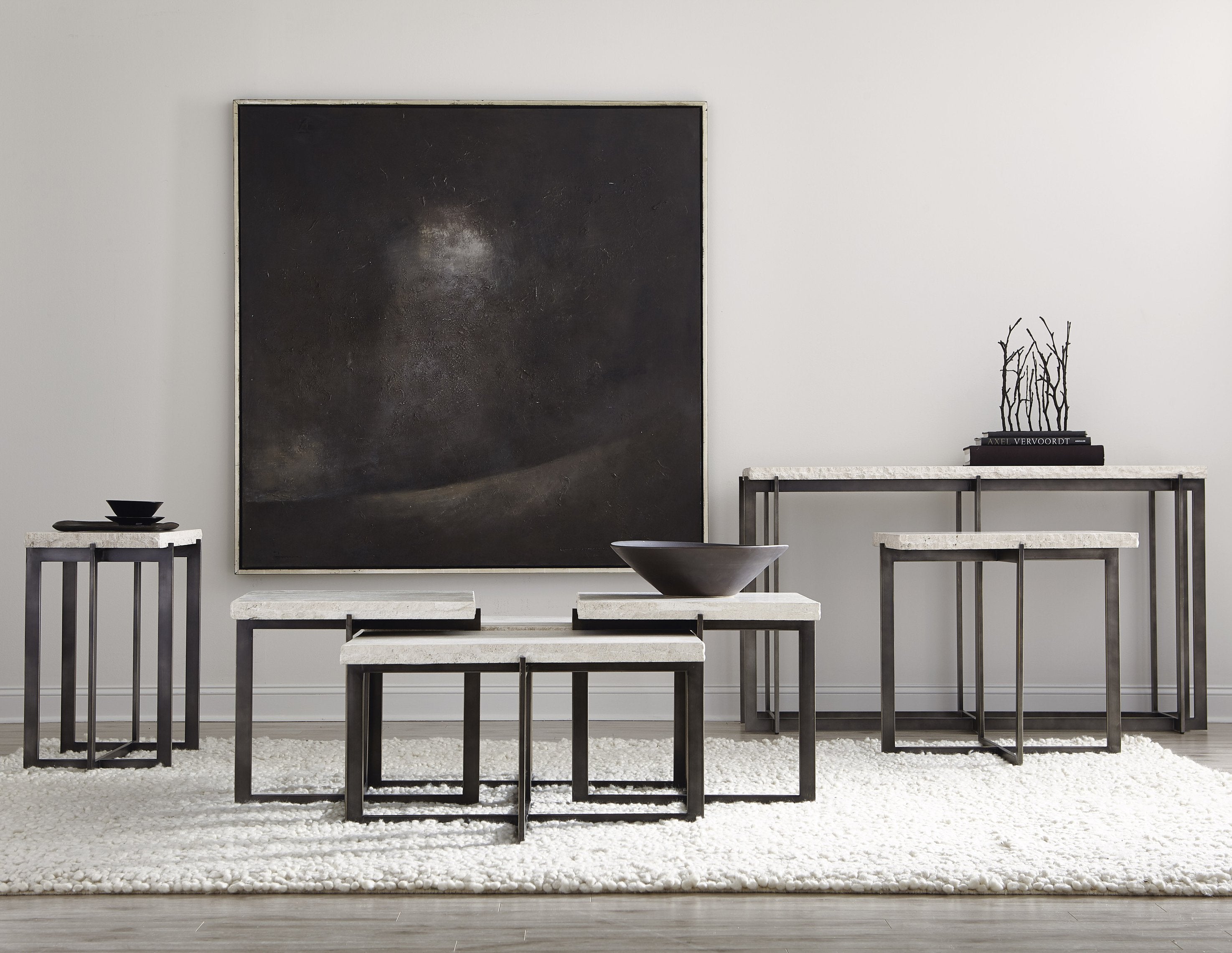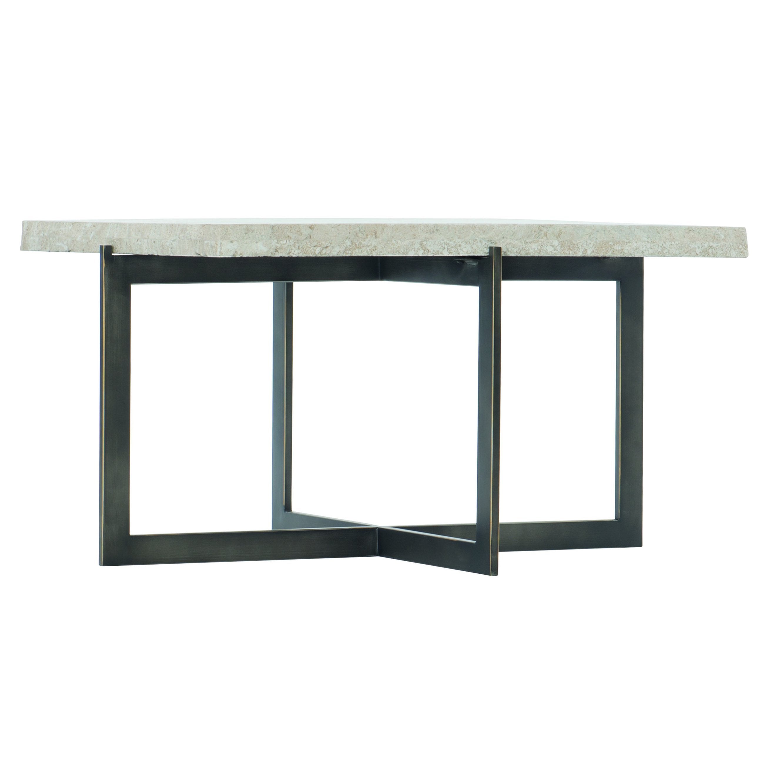 A refined blend of mid-century character and contemporary minimalism, this cocktail table brings sculptural interest and everyday function to living areas. The crisp white travertine top and cross-shaped steel base create a striking contrast that suits both standalone arrangements and bunched groupings, offering durability and style in equal measure.