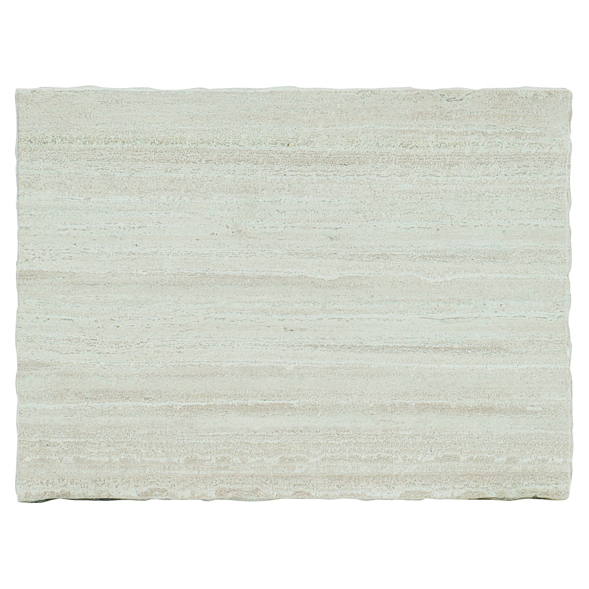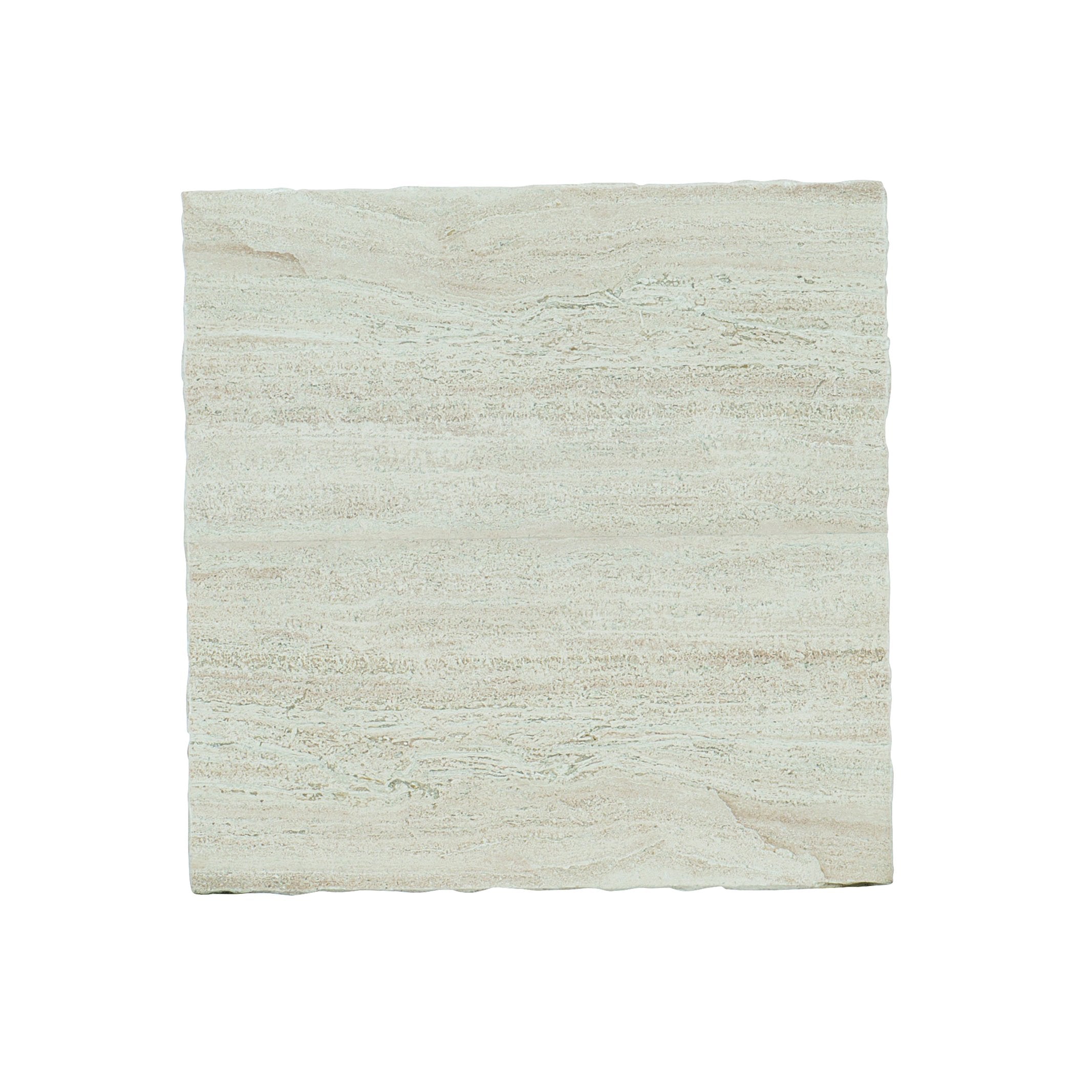 - Top: Laminated white travertine stone—smooth, durable surface with natural veining for a polished look