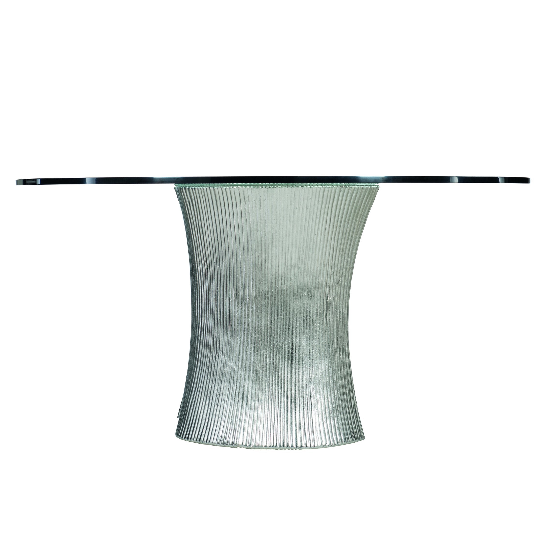 Elevate your dining space with a sculptural centerpiece that combines modern artistry and refined materials. This Serpentine round dining table showcases a fluid aluminum base and a clear glass top that together create an airy, luxurious focal point ideal for contemporary interiors and upscale entertaining.