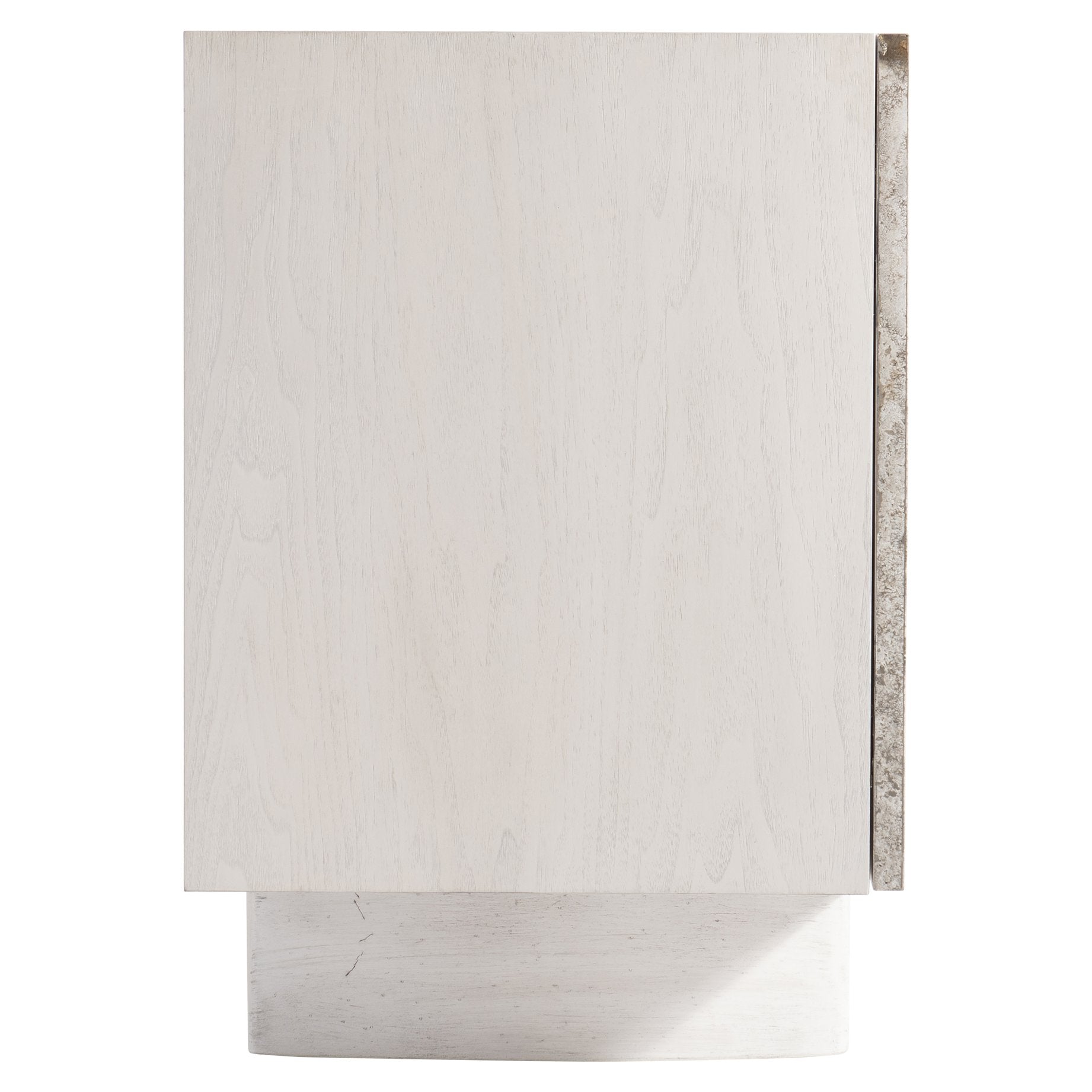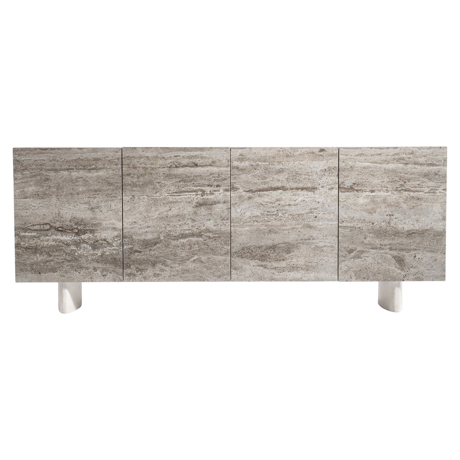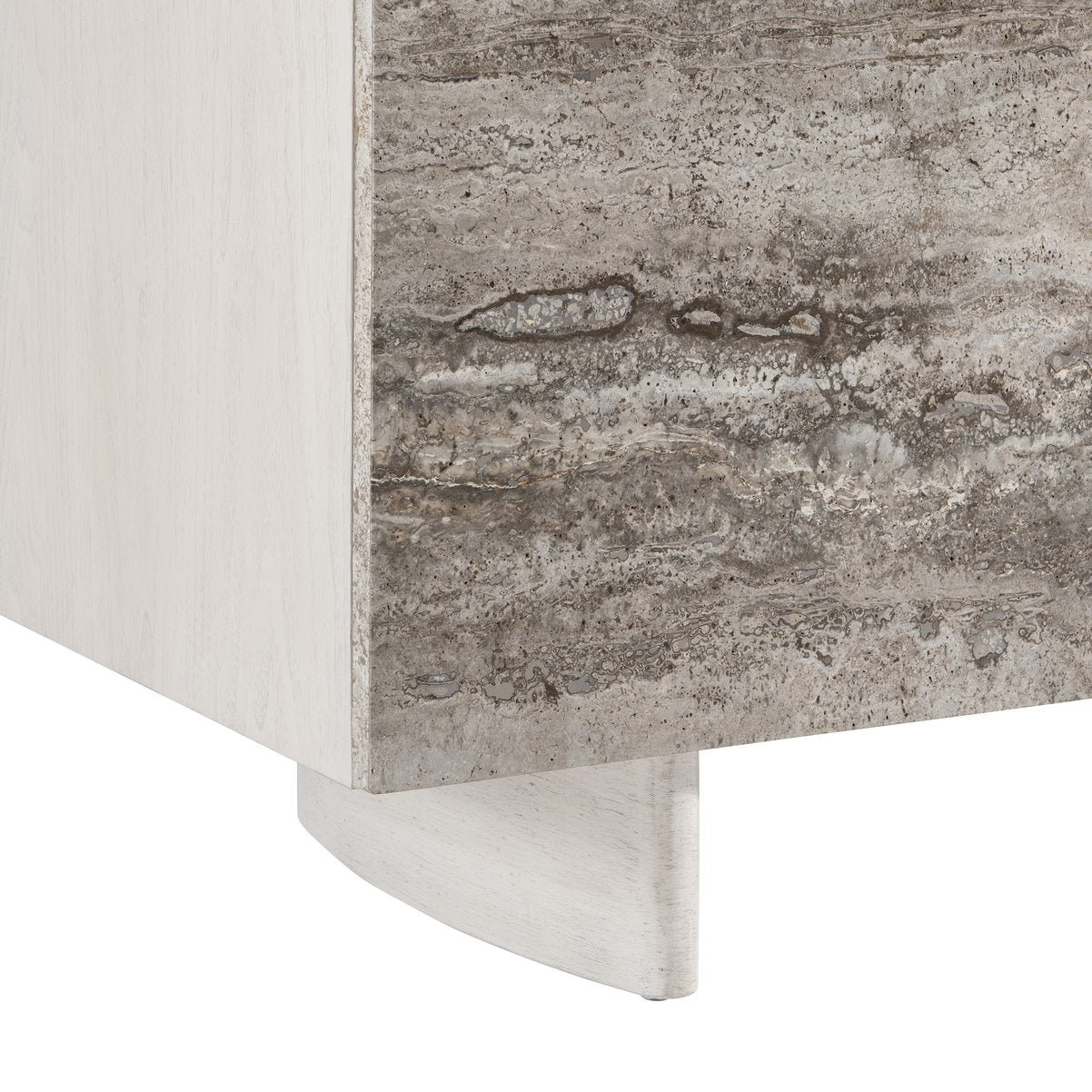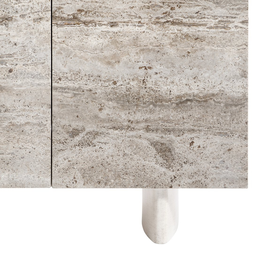 - Materials & Finish: Walnut wood case with a Lutra finish; silver travertine door fronts; cast resin legs finished in Lutra Faux Stone for authentic stone texture.