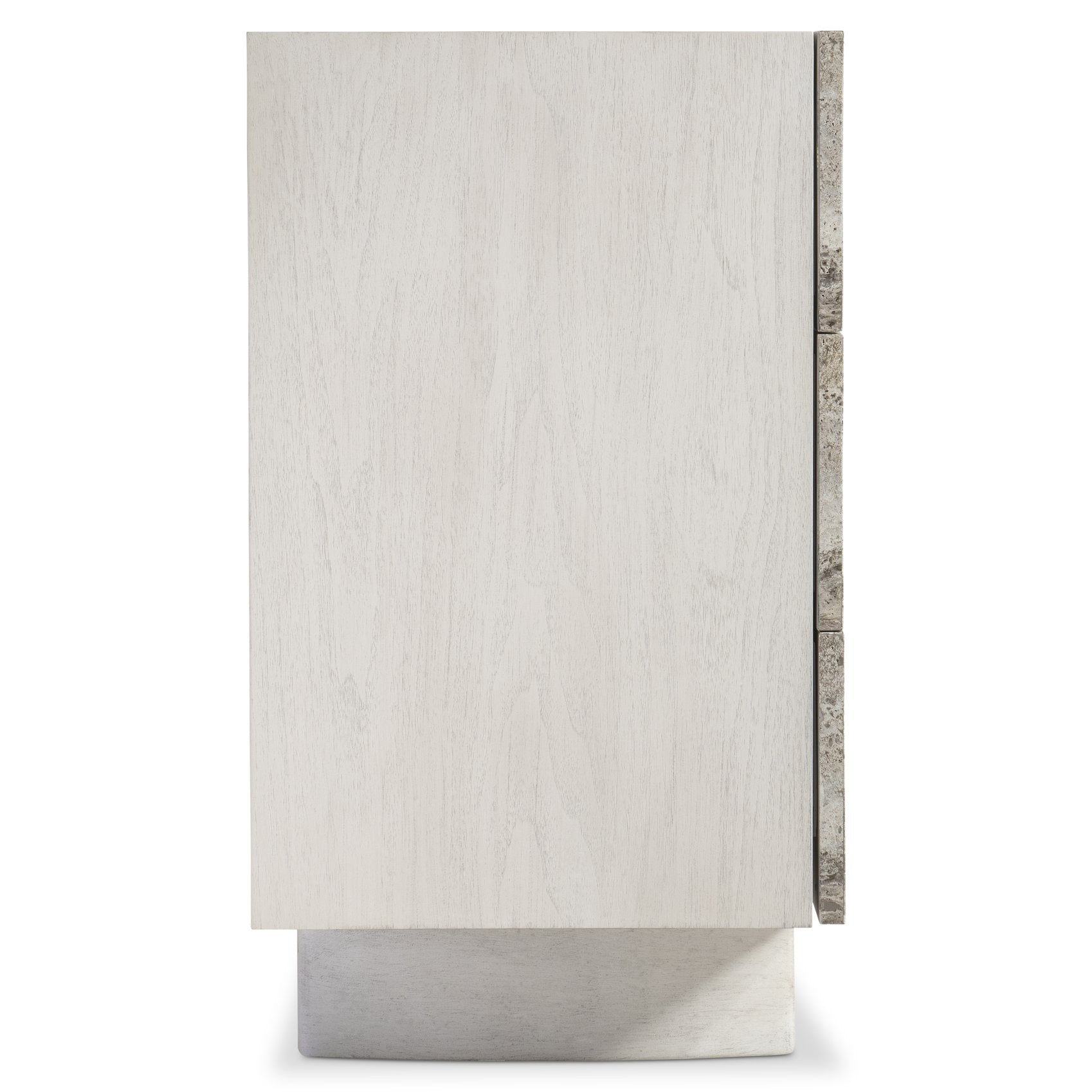 Combine the warmth of walnut with the luminous texture of natural travertine in a buffet that balances modern organic design and practical storage. The Sereno buffet pairs a Lutra-finished walnut case with unique silver travertine fronts and sculpted faux-stone legs to create a striking focal point that’s both decorative and highly functional—ideal for dining rooms, living areas, or entryways.