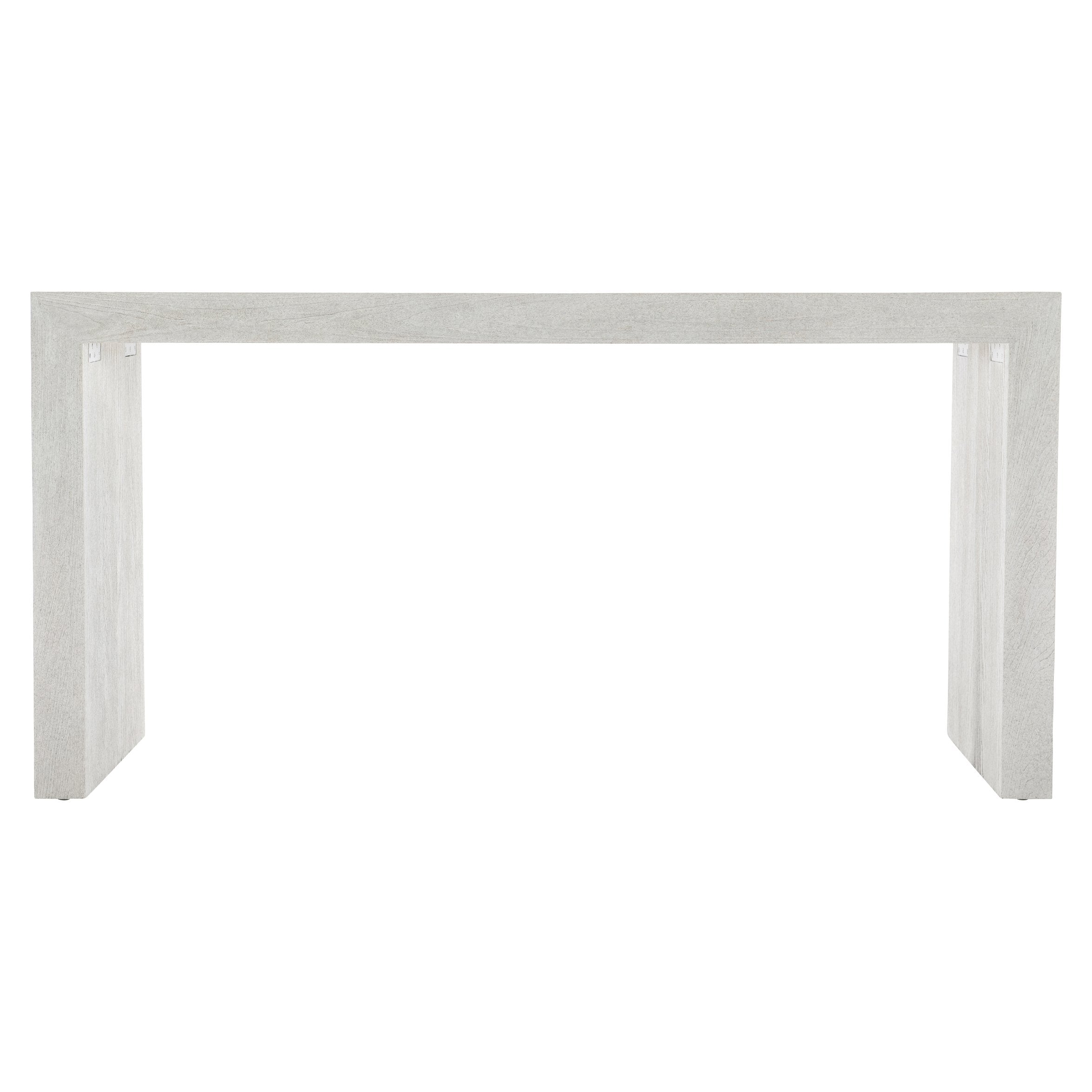 Sandblasted White finish. Rectangular console table with sandblasted Ash veneers. Adjustable glides.