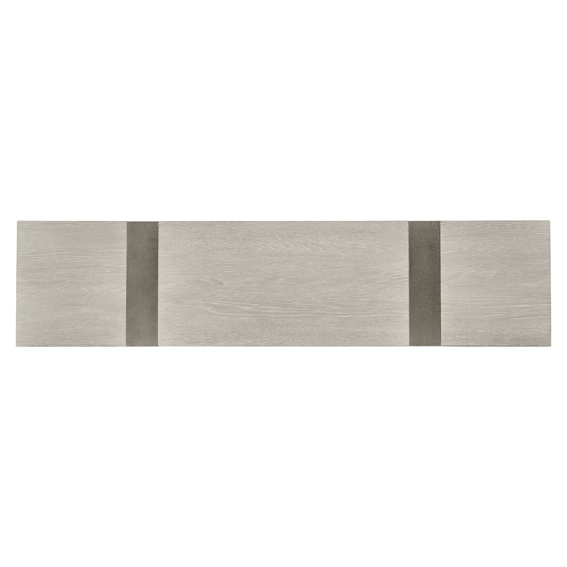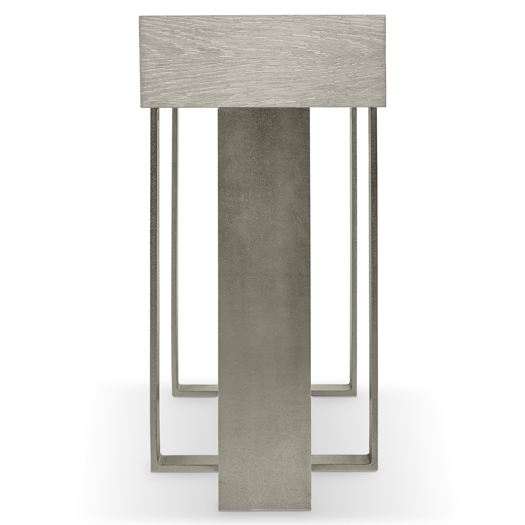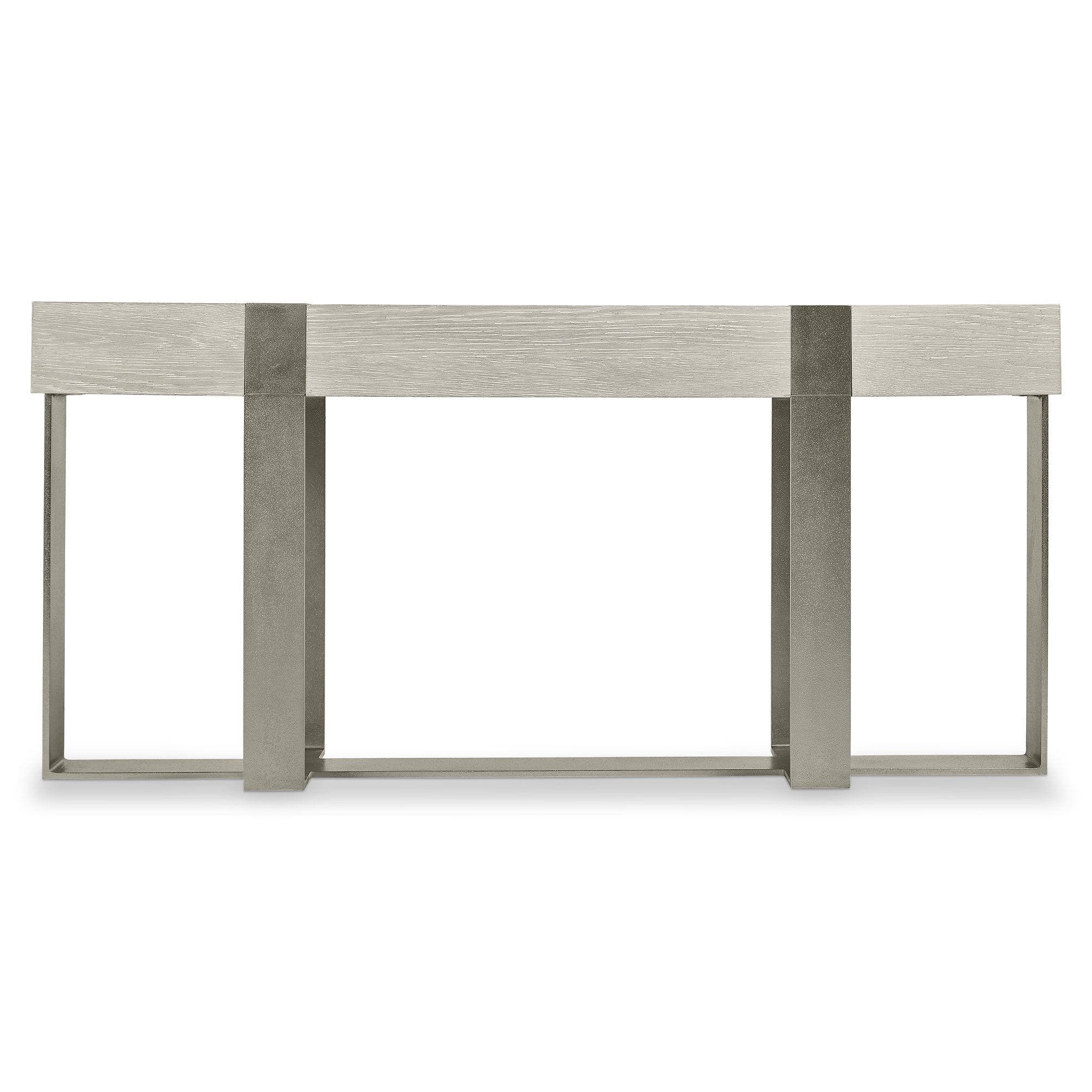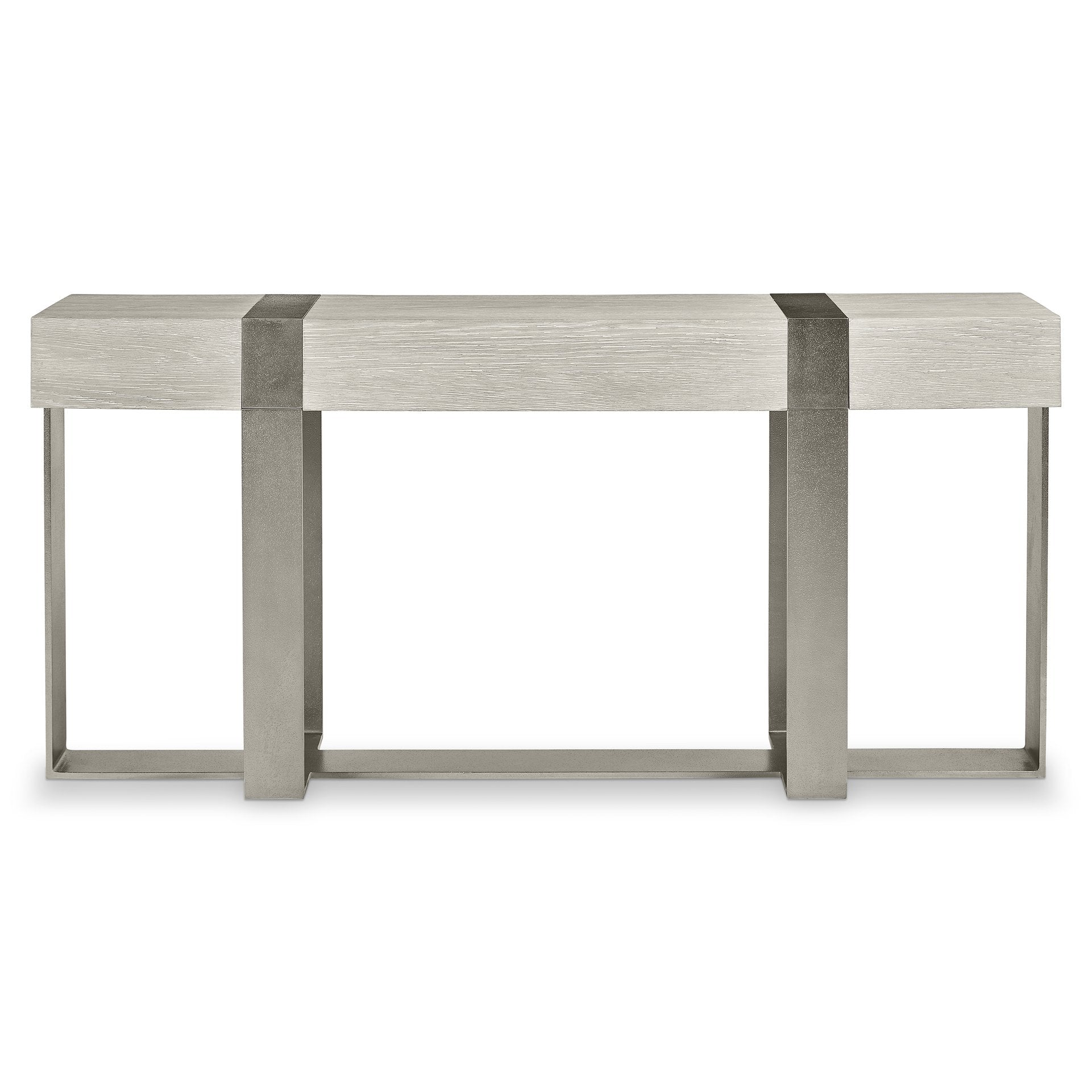 Elevate your entryway or living space with the Bernhardt Tempo Console Table — a striking blend of rustic warmth and modern architectural detailing. The wire-brushed oak top offers natural texture and character, while the sandblasted satin nickel aluminum bands and base create an airy, sculptural silhouette that reads both casual and refined.