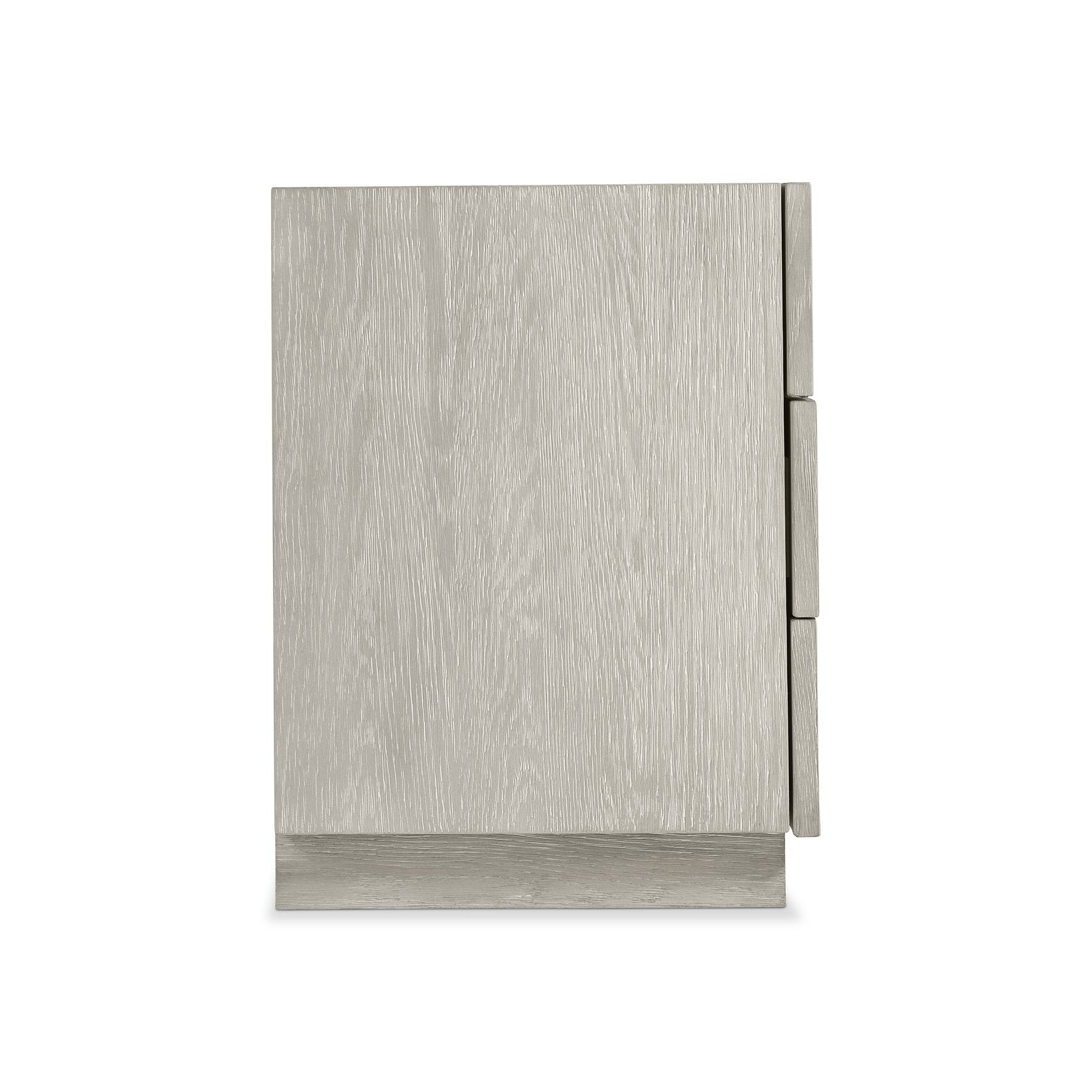 This Bernhardt Tempo nightstand blends industrial edge with rustic-modern warmth, creating a striking bedside focal point that balances texture, function, and clean-lined design. The layered metal overlays over wire-brushed oak give each piece depth and visual interest, while thoughtful tech features and push-to-open drawers make it exceptionally practical for modern living.