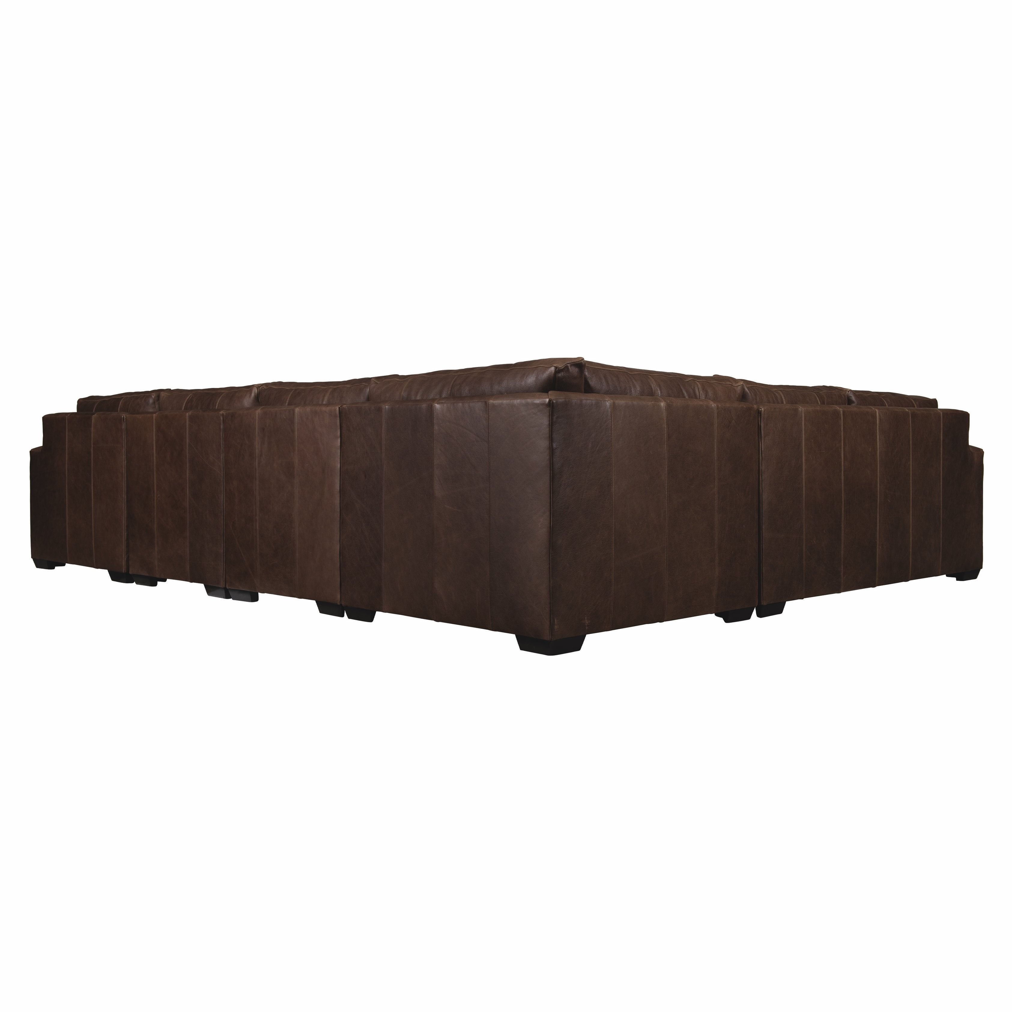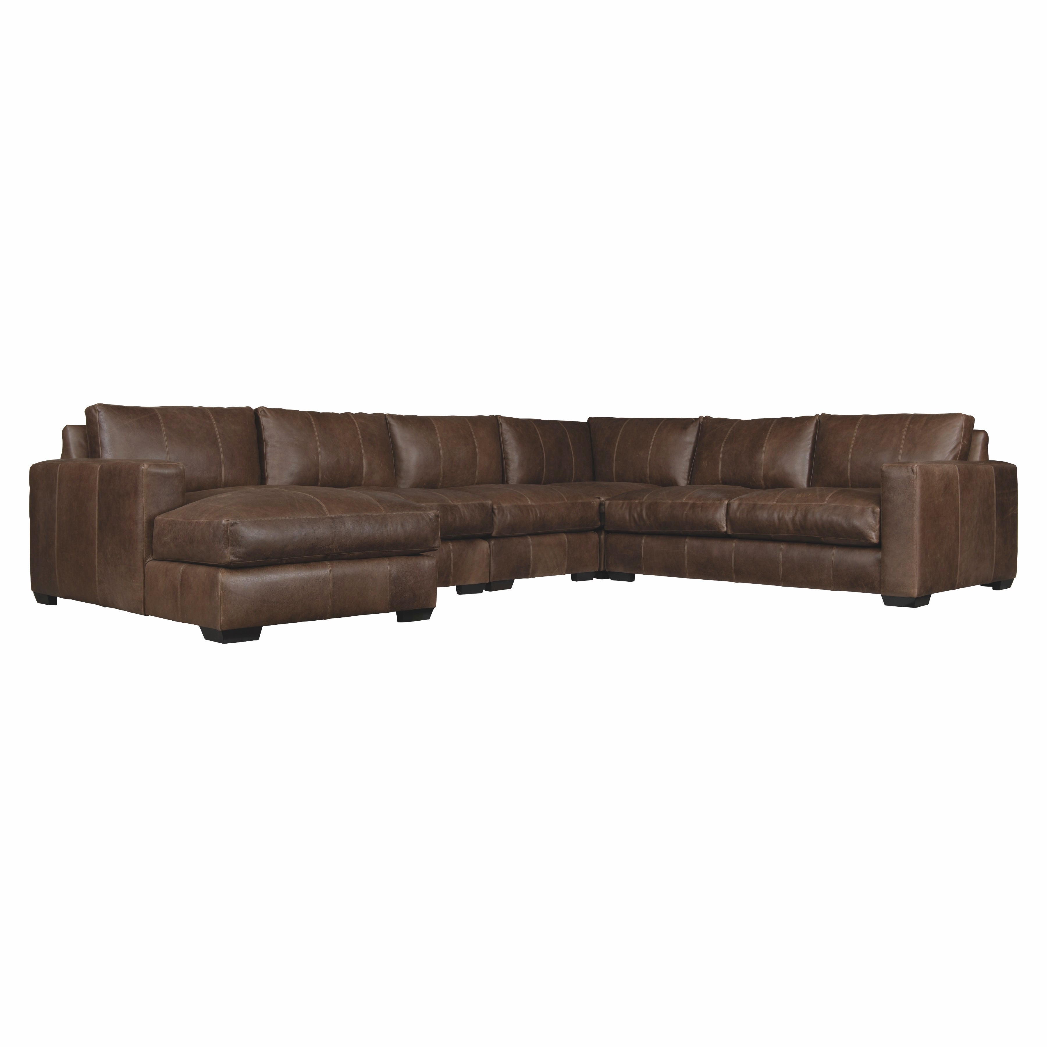 Sink into refined comfort with this expertly crafted leather sectional that blends modern lines with plush seating for everyday lounging and sophisticated entertaining. Clean wide track arms, tapered block feet, and top-grain leather upholstery create a timeless look while generous cushions and fiber-filled back pillows ensure lasting comfort.
