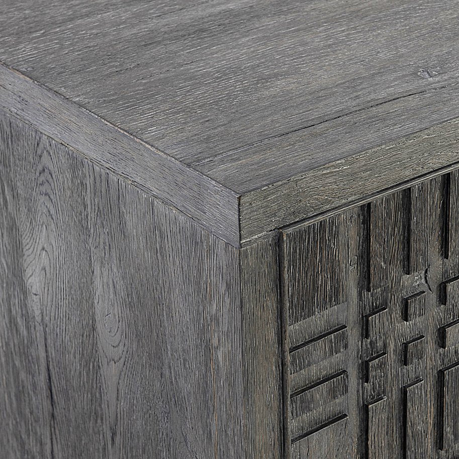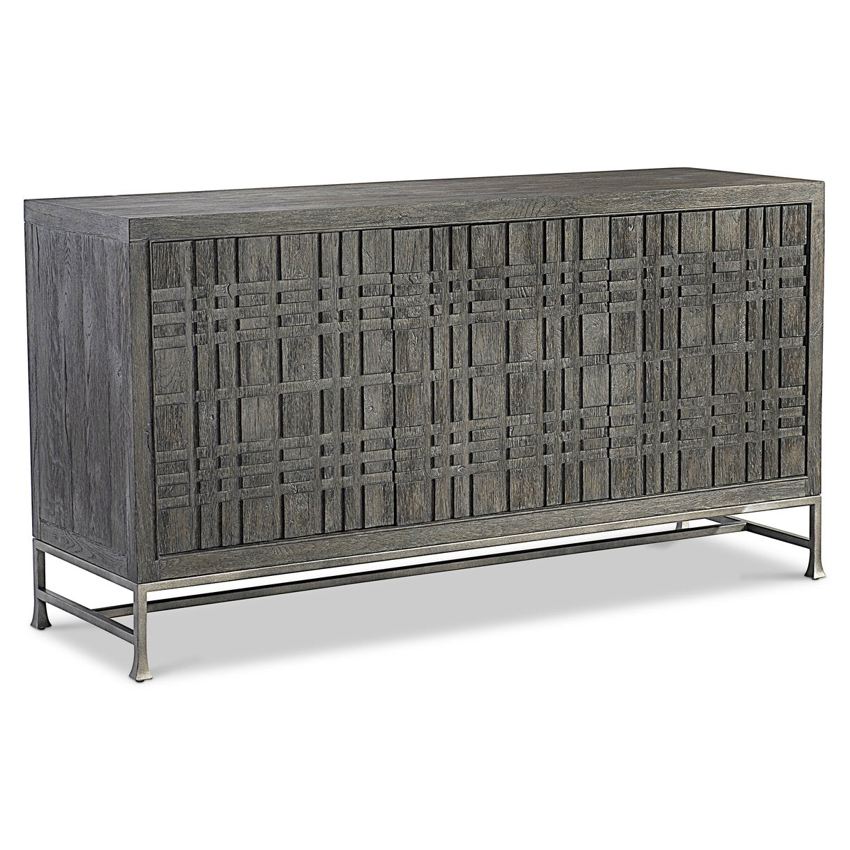 Bring urban sophistication to your dining room or entryway with the Tribeca buffet — a striking balance of modern geometry and warm wood tones. Its raised geometric door pattern echoes city street grids, while the textured steel base adds industrial contrast. Designed for everyday use, the buffet combines soft-close hardware, thoughtful interior organization, and durable construction to keep tabletop clutter out of sight and essentials neatly stored.